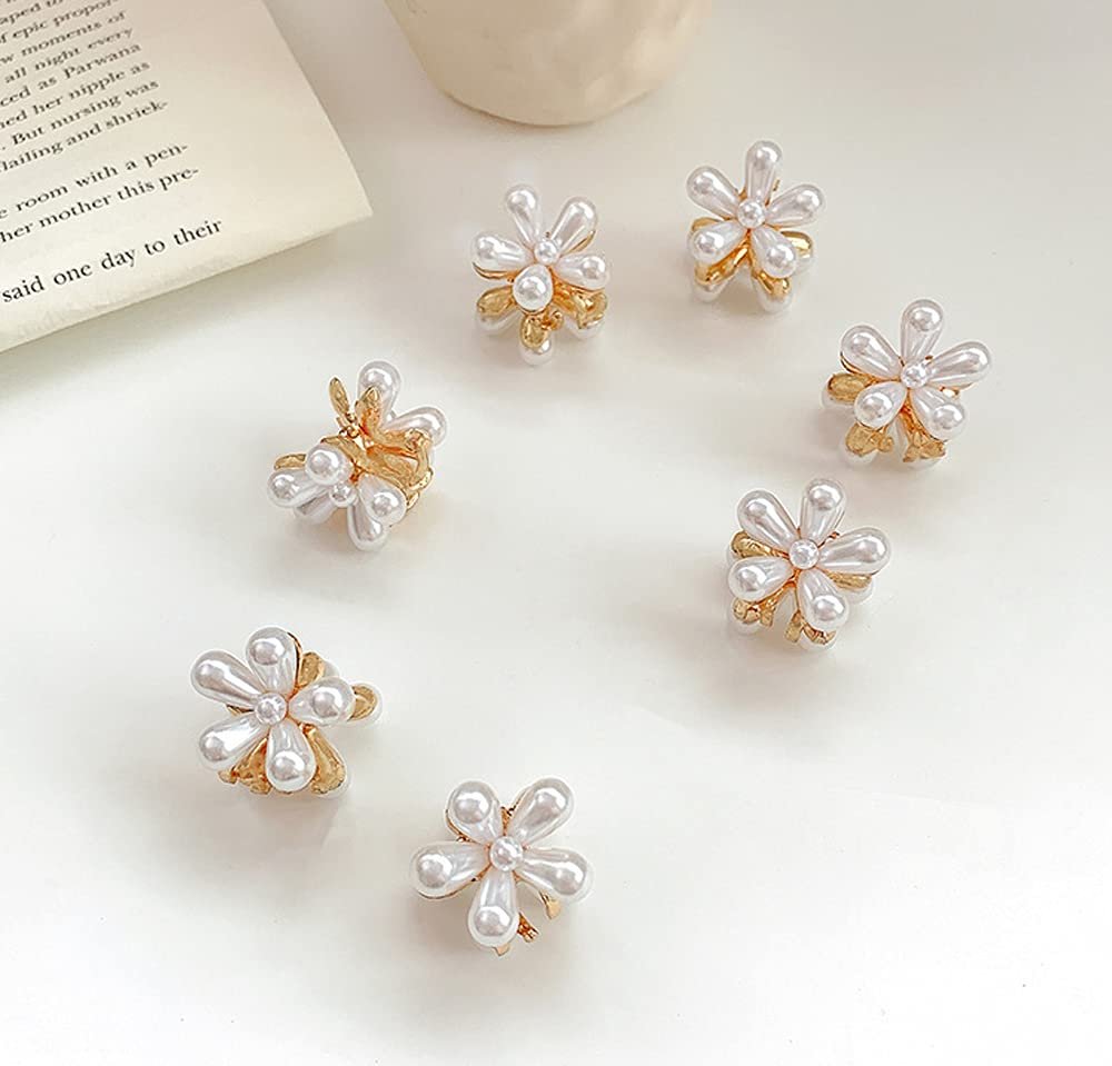 10 Pcs Small Mini Pearl Claw Clips with Flower Design, Sweet Artificial Bangs Clips Decorative Hair Accessories for Women Girls