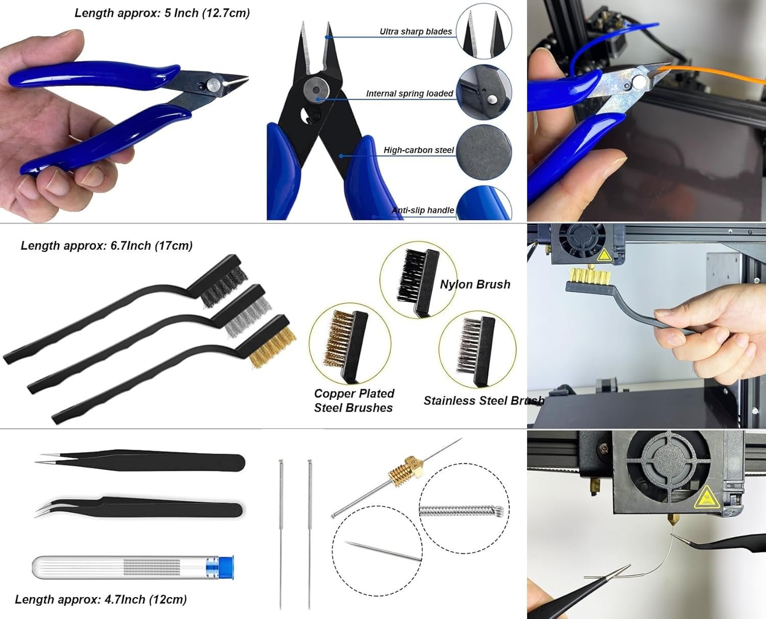 👍WHY CHOOSE US? A good piece of work needs a good set of tools, all the accessories of 3d printer tools are made of high quality materials, well made, comfortable to hold and can be used for a long time; AEORUM124 pieces of entry-level 3D printer kits selected by professionals are the perfect hand tools for all the 3D printing professionals, hobbyists and creators.