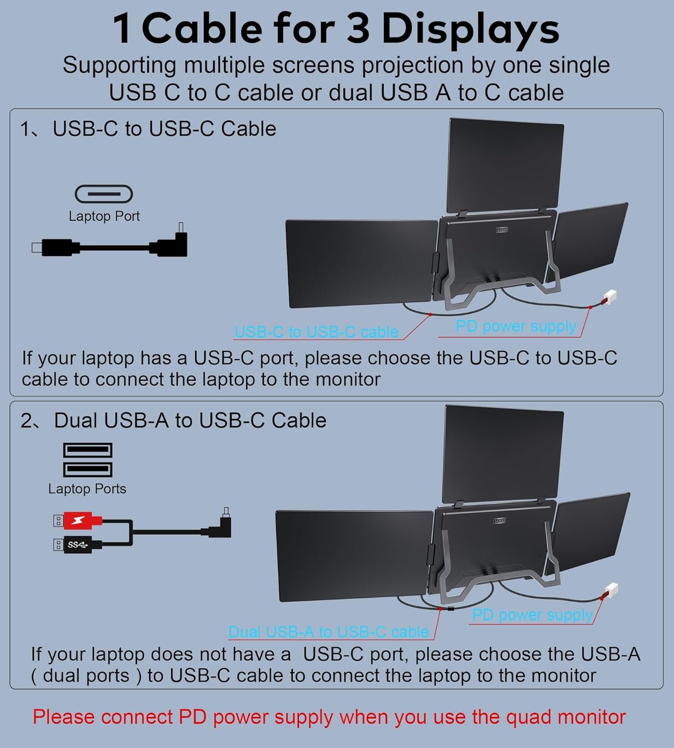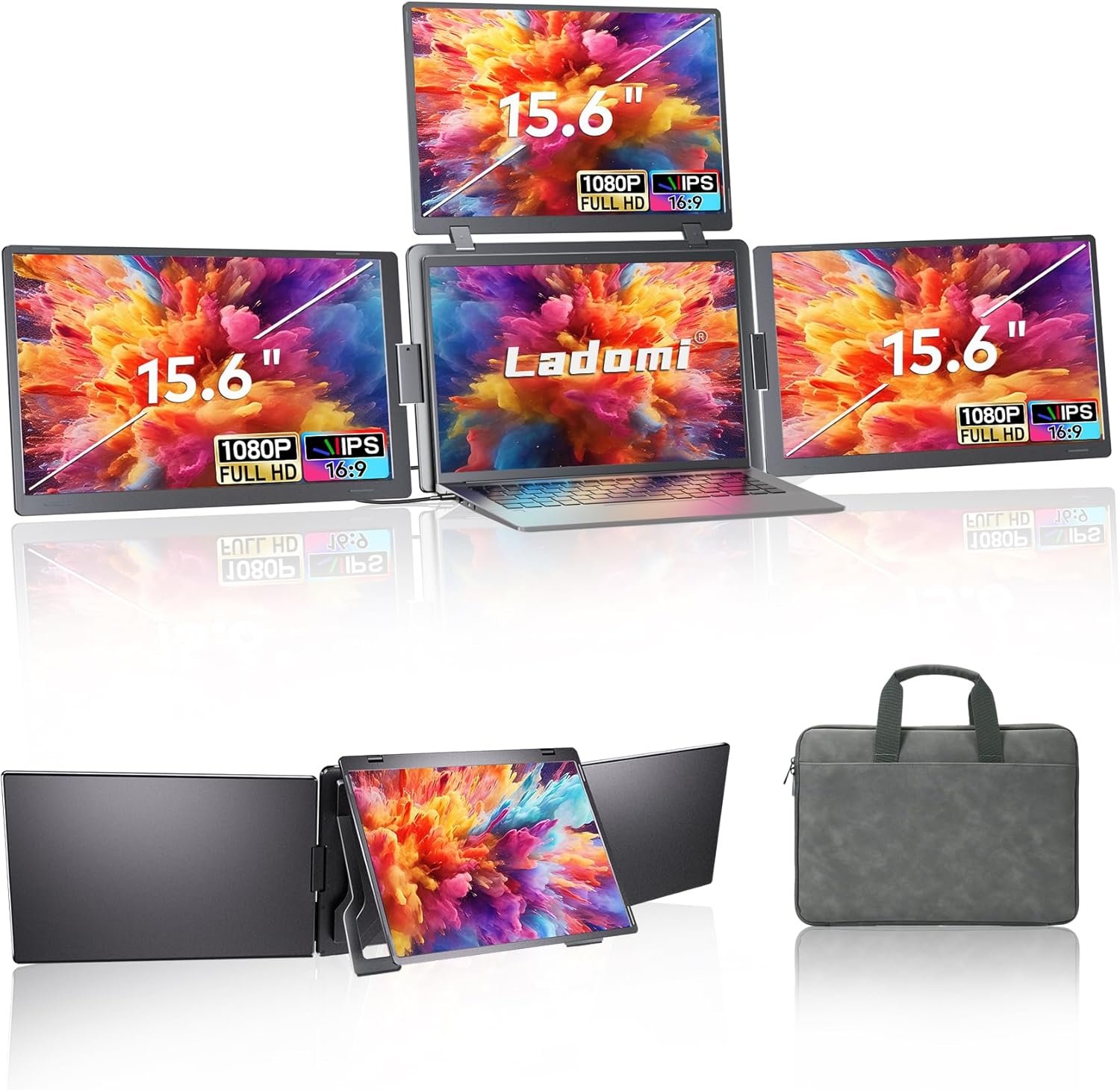 24/7 Support: Ladomi laptop screen extender can connect seamlessly via single USB-C cable. For all three screens, top screen needs 30W+ PD power adapter. Connection issues? Our team solves within 24 hours.