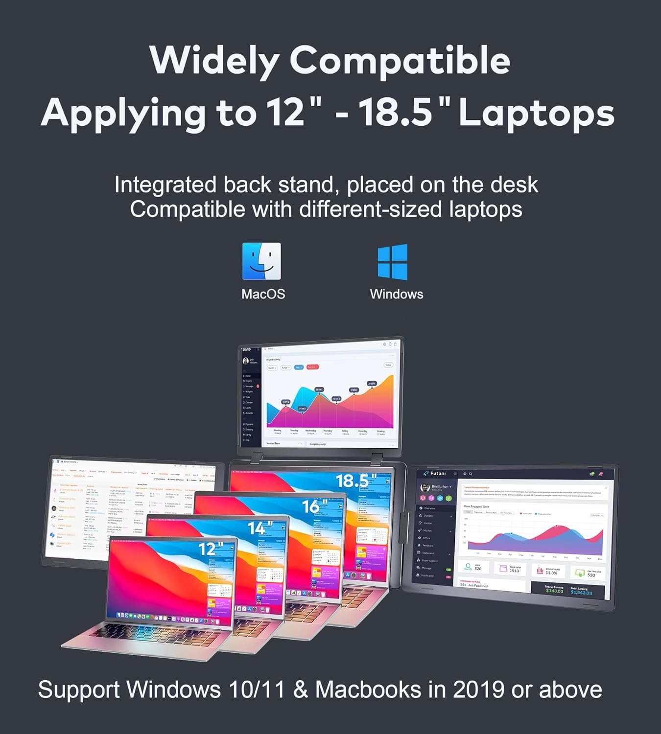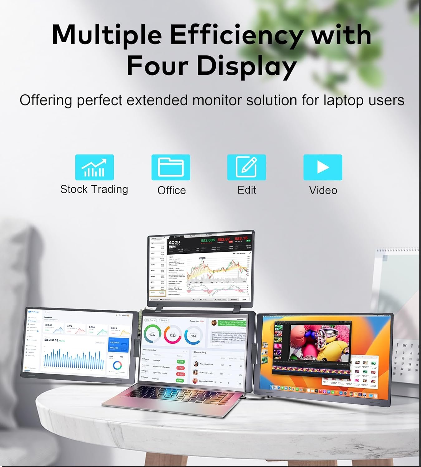 Boost Work Productivity with Triple Monitor Setup: This triple screen laptop monitor extender transforms multitasking for programmers, financial analysts, cross-border sellers, and mobile pros—run code, charts, dashboards, and communication simultaneously.