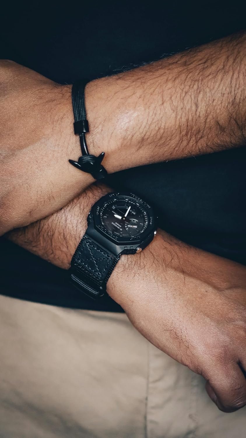 Leather-nylon design: Made of genuine leather, the smooth leather surface conveys a feeling of high quality. Part of the back is made of nylon, which increases the contact surface, ensures comfort and increases breathability. Please choose the right size according to your wrist length. The strap fits wrists from 6.1″ – 10.4″.