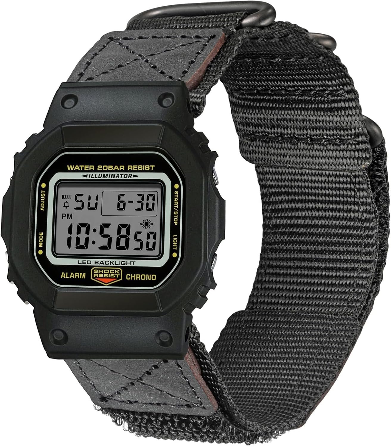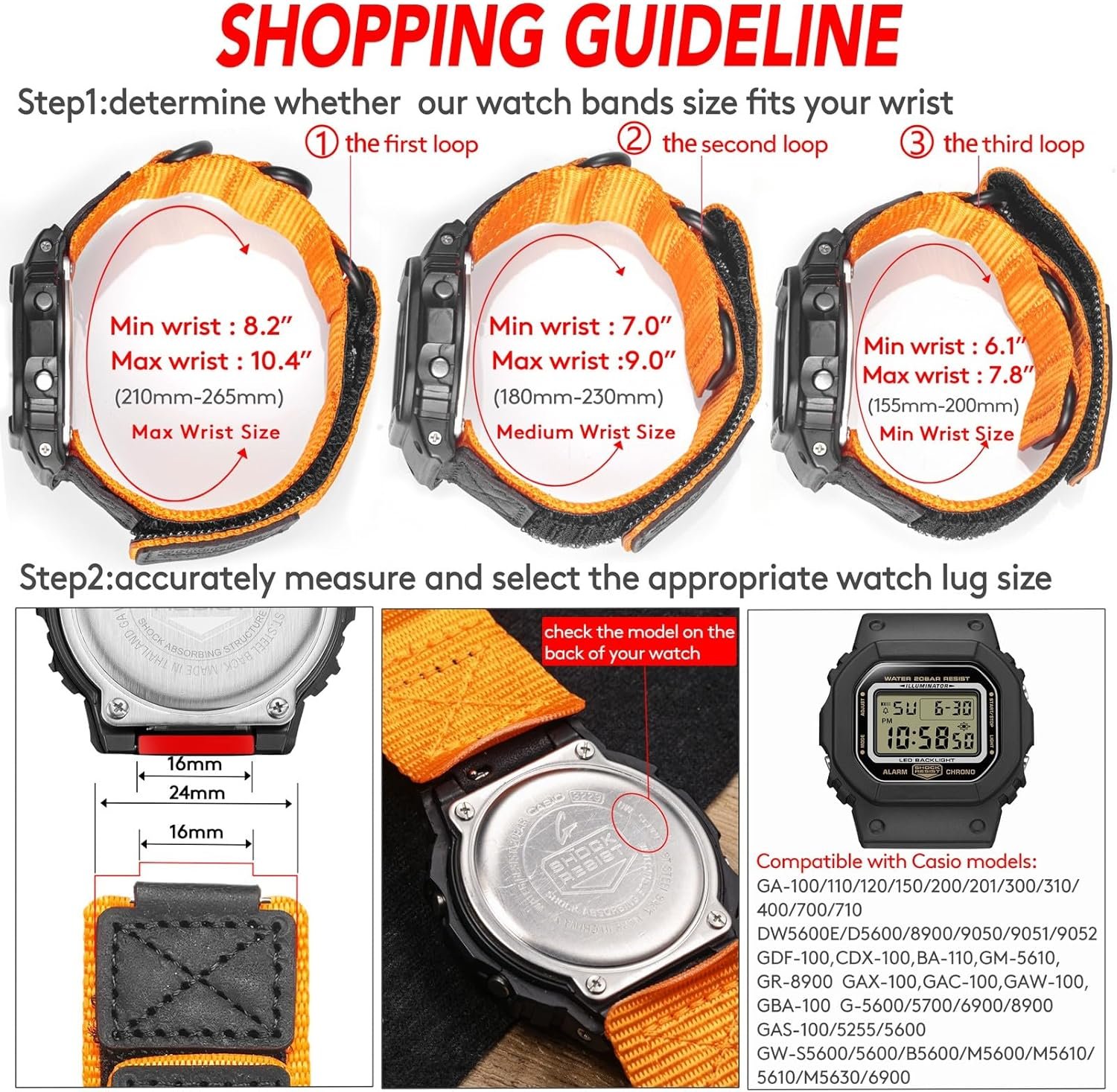 16mm Watch Band Strap for Casio Mens G-Shock DW5600/8900,GA100/110/120,GD100/110/120,GW6900,GWM5610,Upgraded Three Buckles Nylon Watch Band