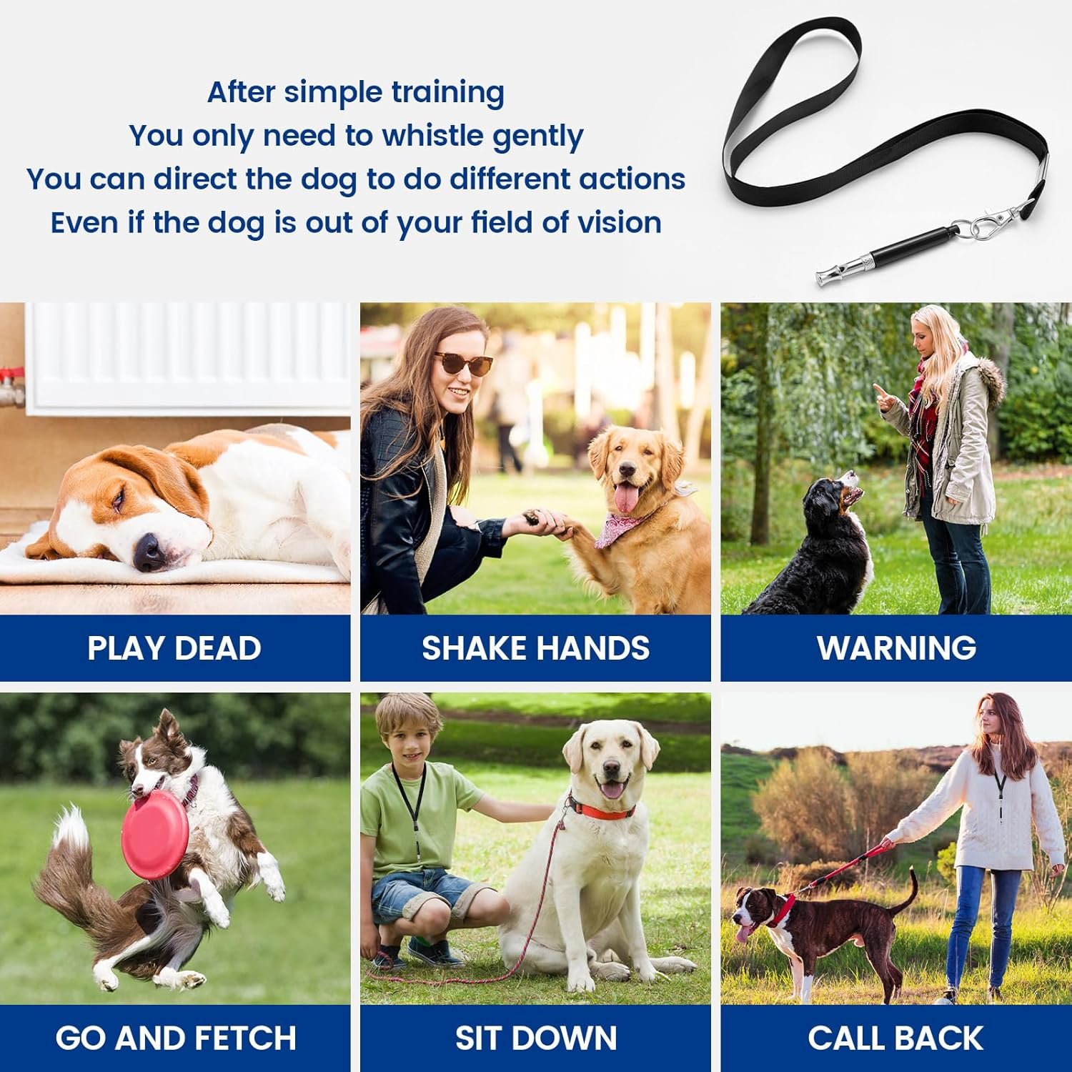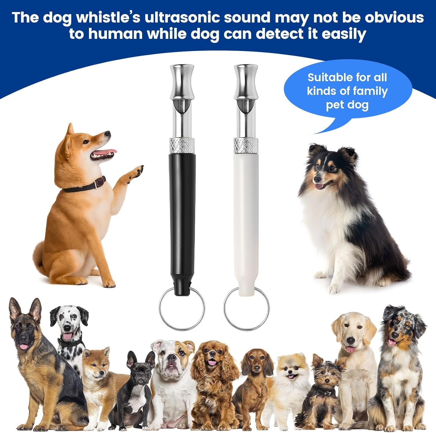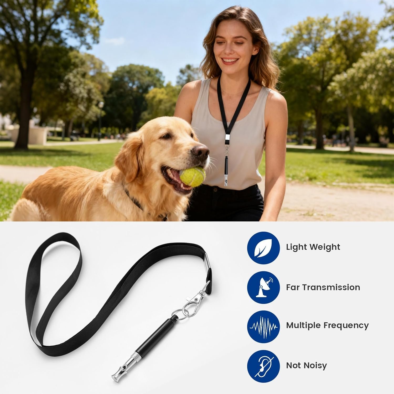 Effectively Reduce Excessive Barking: Gently blow the ultrasonic dog whistle to capture your dog’s attention and interrupt unwanted barking. The high-frequency sound provides a safe and effective way to calm your dog during noisy moments, without disturbing you or your neighbors.