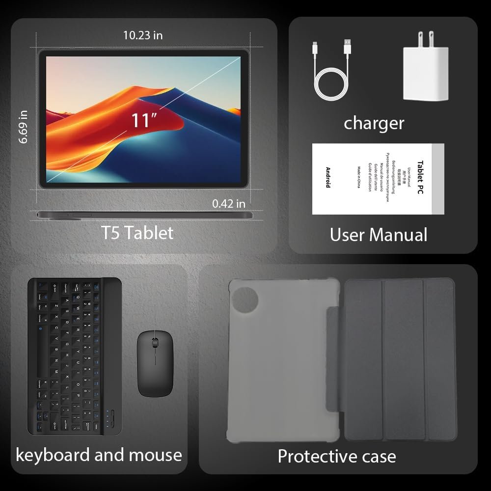 2025 Tablet 11 Inch Android 15 Tablet, 20 GB RAM 128 GB ROM 1TB TF, 1280×800 HD IPS, 8000 mAh, 2.4G/5G WiFi BT 5.0, GMS Certified, Octa-Core, 5MP + 8MP dual cameras, Keyboard Mouse, case (Black)