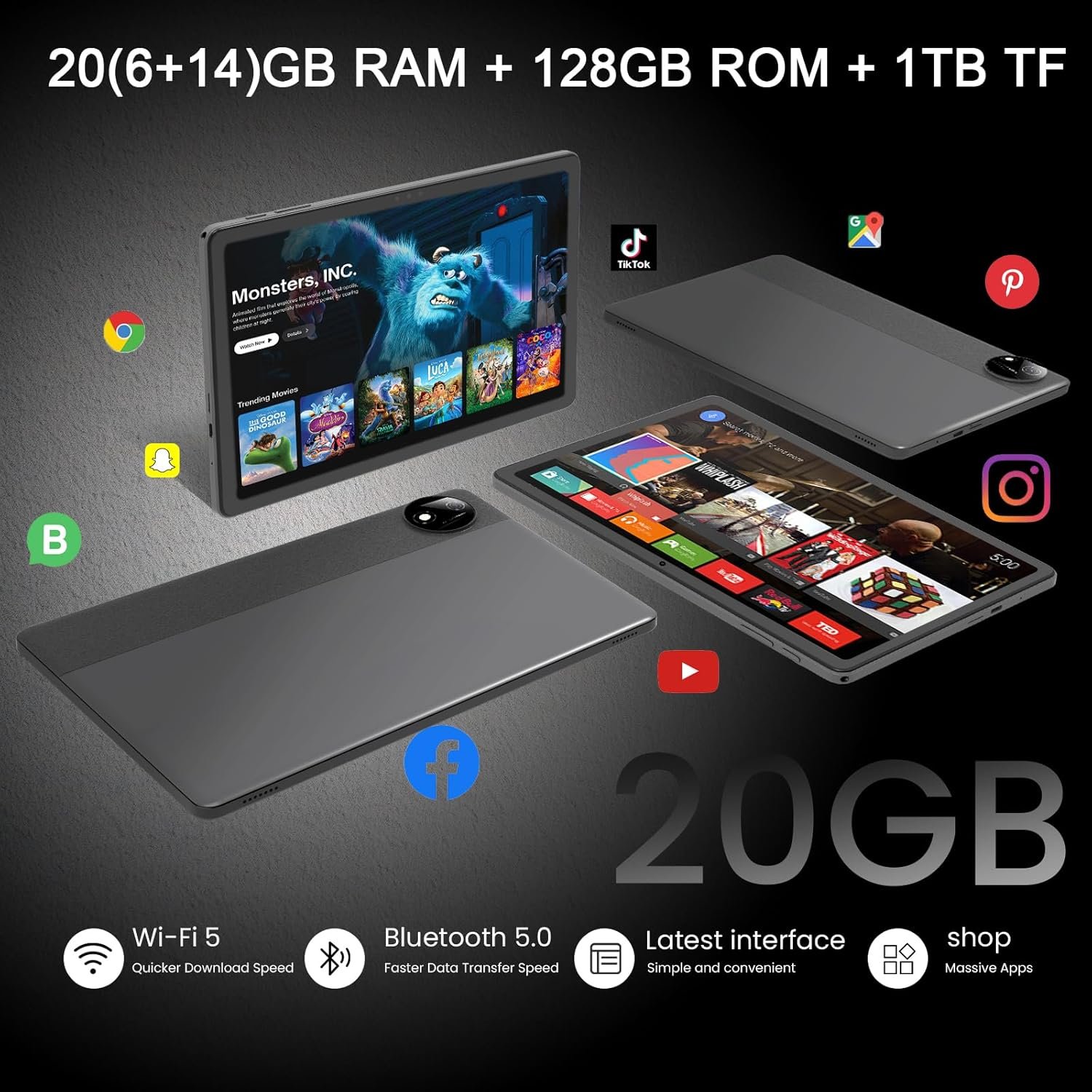 Massive Storage – The tablet comes with 20GB (6+14) RAM 128GB ROM and expandable up to 1TB via microSD card (not included). It comes preloaded with the Google Play Store, so you can easily download any apps you need