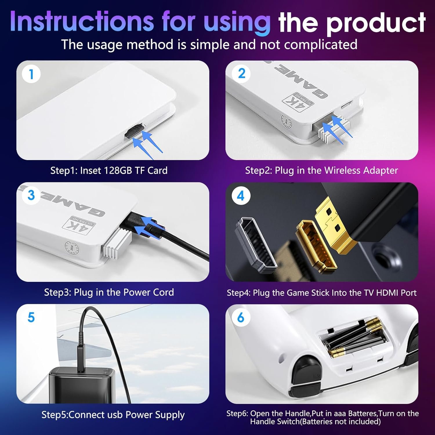 【Plug & Play for Easy Use】This game console is simple to set up: just connect the USB power cable to your TV and plug the HDMI cable into the HDMI port, then switch to the corresponding HD channel. The game menu will display immediately for you to start playing