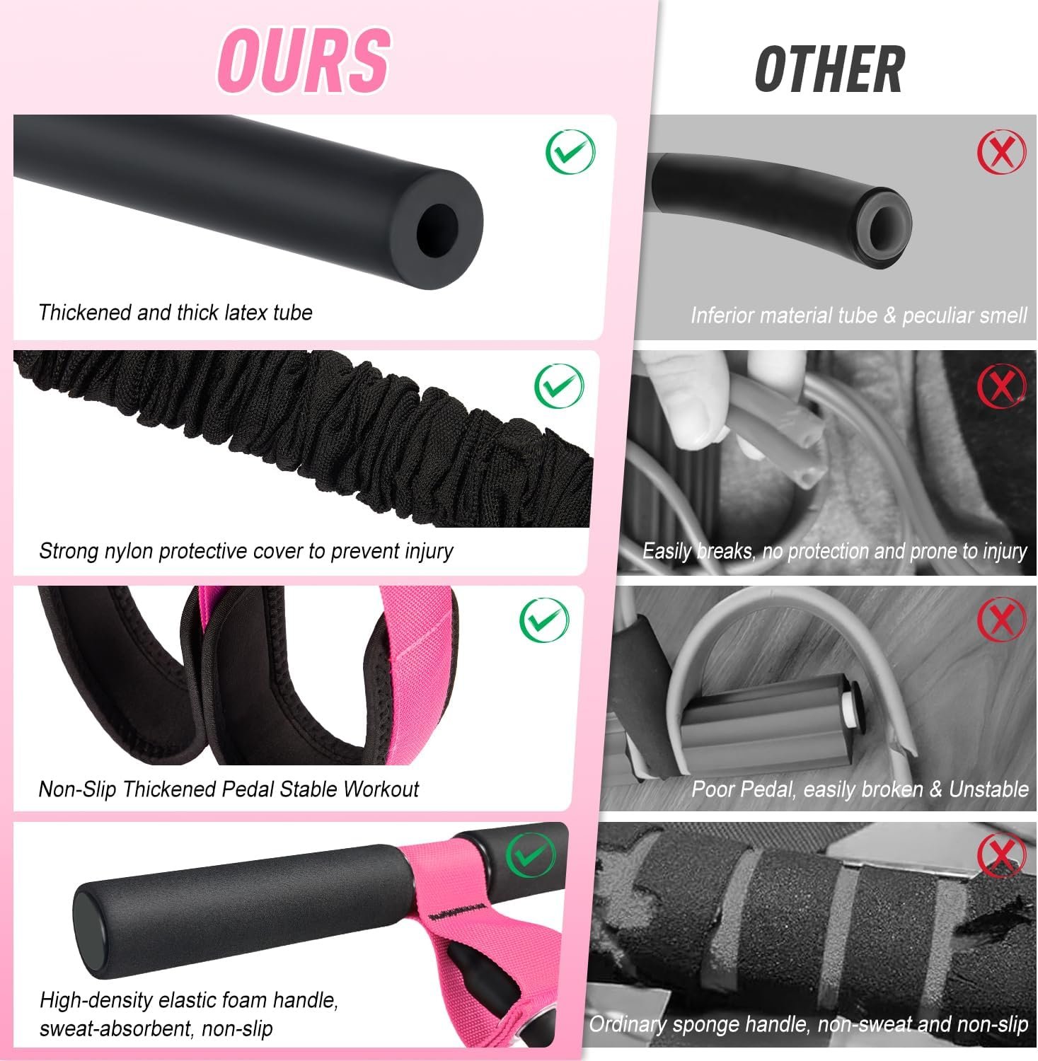 【60% Stronger Tension, 0% Breakage Risk】 Dedicated to elevating your home workout experience, we revolutionized the pedal resistance band with handle design! After extensive market research, our upgratded foot pedal resistance band features high-elasticity latex tubes that deliver stronger tensionthan ordinary elastic bands for exercise. Say goodbye to snapping cords or weak pulls-our resisstance band with handles ensures professional performance and safety with its anti-snap design.