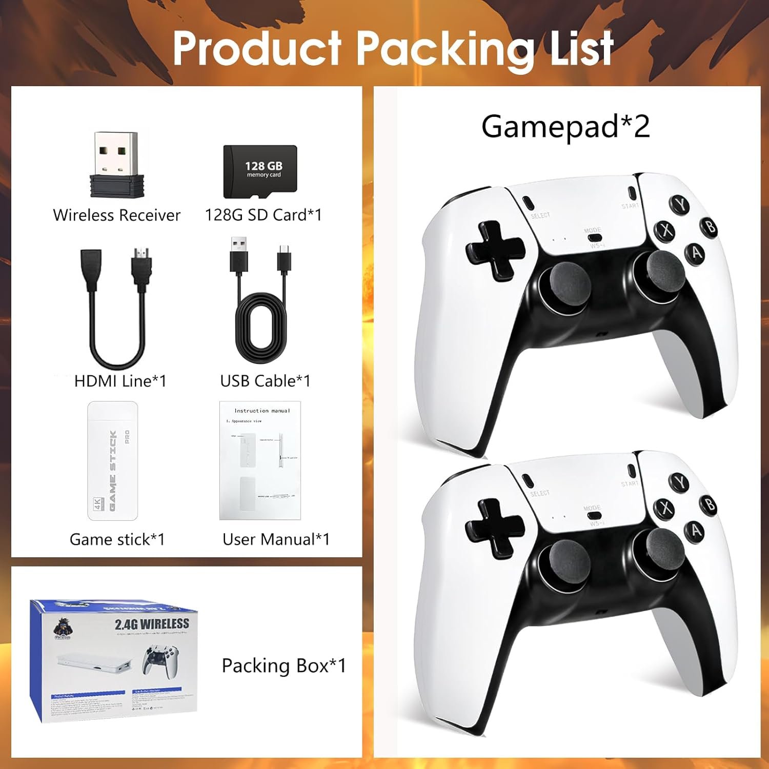 2026New Wireless Retro Game Console 23 Simulators and Over 40,000 Games Plug and Play 4K HD HDMI TV Game 2.4G Wireless Controllers(128G)