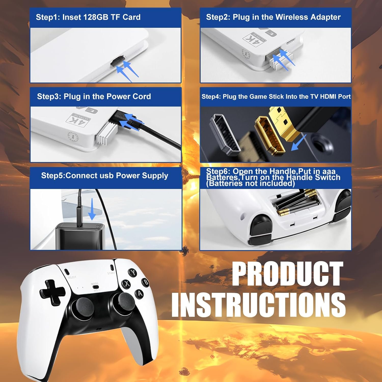 Plug and Play:This plug and play retro gaming console is designed for effortless setup. Simply connect it to your TV via HDMI, power it on, and access your games within seconds—no complicated installation