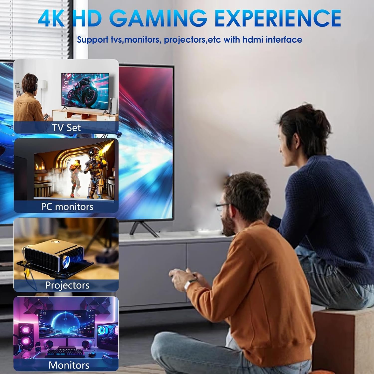 4K HD Picture Quality:Upgrade your retro experience with 4K HDMI output. This retro gaming console for TV delivers enhanced visuals on TVs, monitors, and projectors, making classic games look sharper and more enjoyable on modern screens