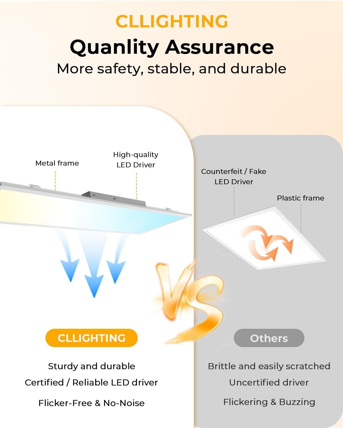 ✅ ETL Certified & 5-Year Worry-Free Warranty: Backed by CLLIGHTING’s 5-year warranty and ETL certification, this 2×4 flat panel light meets U.S. safety and performance standards. The aluminum housing promotes fast heat dissipation and lasting durability. Shop with confidence for a reliable, commercial-grade lighting solution.
