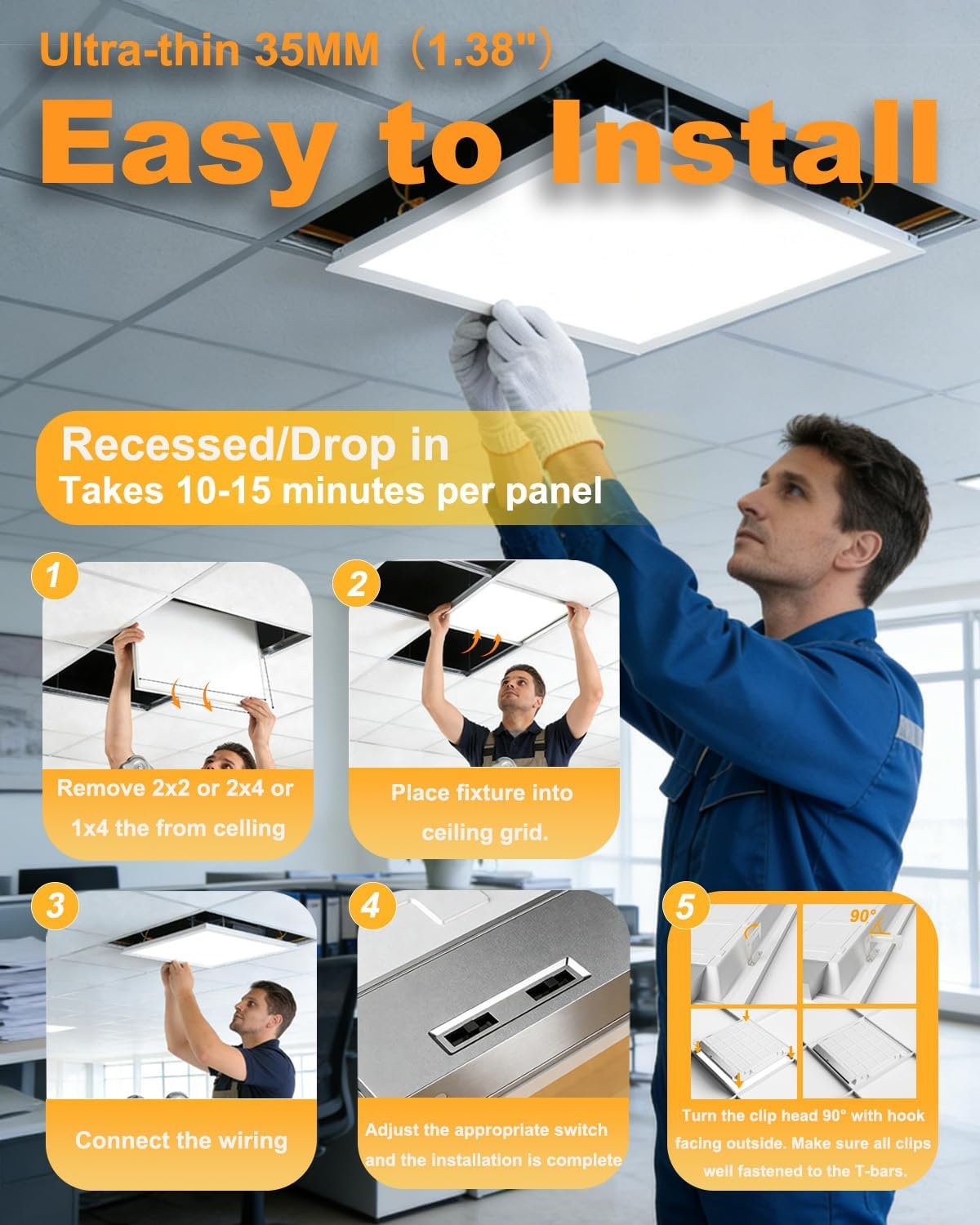 ✅ Superior Performance & Flicker-Free: Engineered with high-efficiency LED chips, these 2×4 LED drop ceiling panels deliver uniform, soft illumination without flicker or noise. Ideal for offices, schools, hospitals, and commercial spaces, they ensure visual comfort and consistent brightness—perfect for environments where focus and clarity matter.