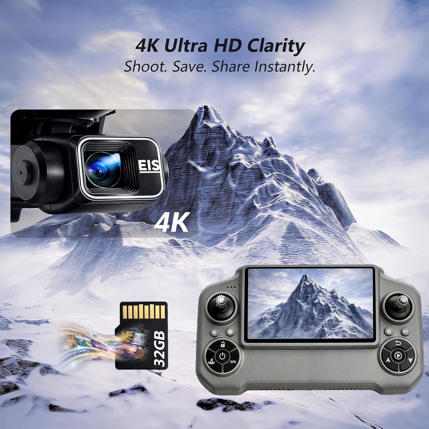 【Capture Cinematic 4K Footage with 3-Axis Gimbal Stability】: This drones with camera for adults 4K features a professional 3-axis gimbal that delivers smooth, shake-free 4K video and sharp photos, perfect for stunning aerial shots during travel, adventures, or family events.