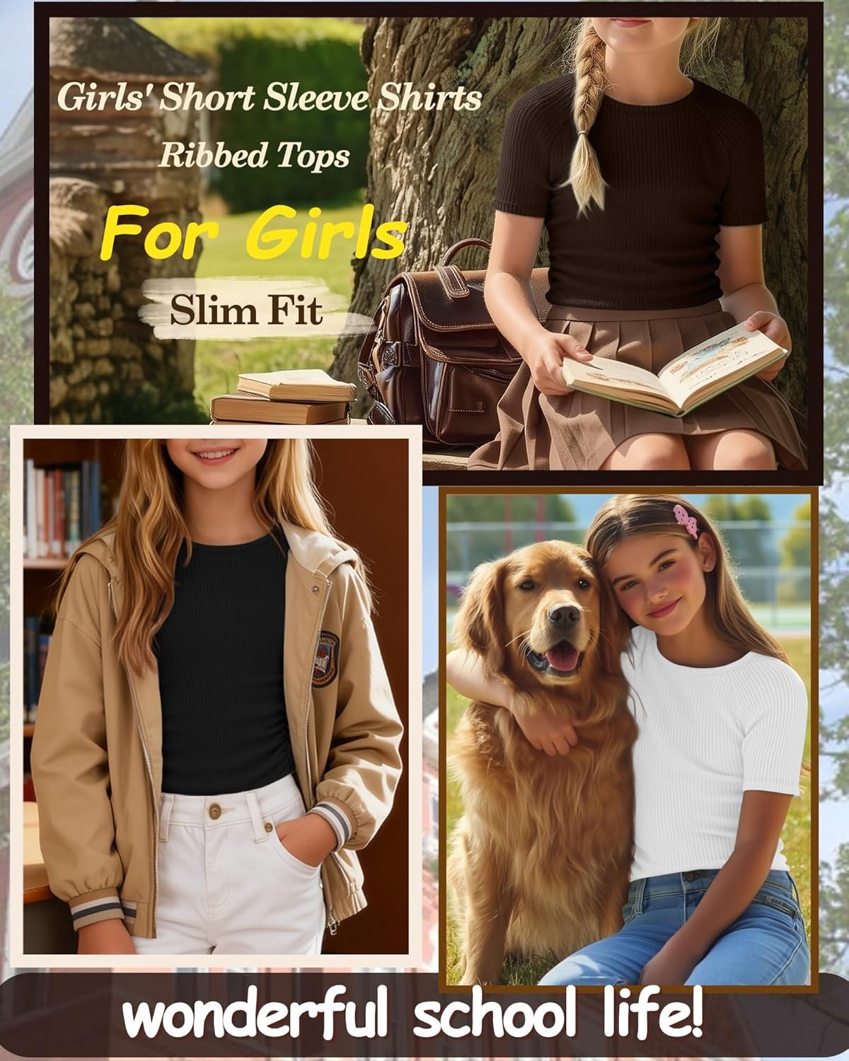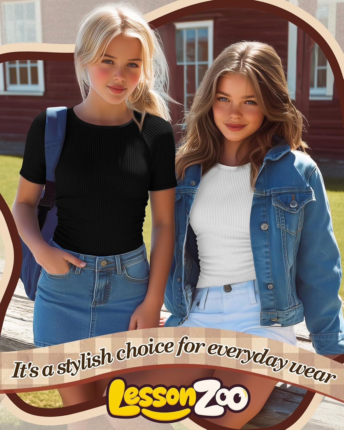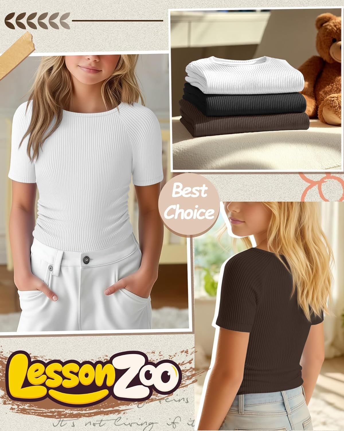 Be the first to review “3 Pack Girls Short Sleeve Shirts Summer Slim Fit Crew Neck Tops Ribbed Knit Side Ruched Tees Basic Clothes for Kids”