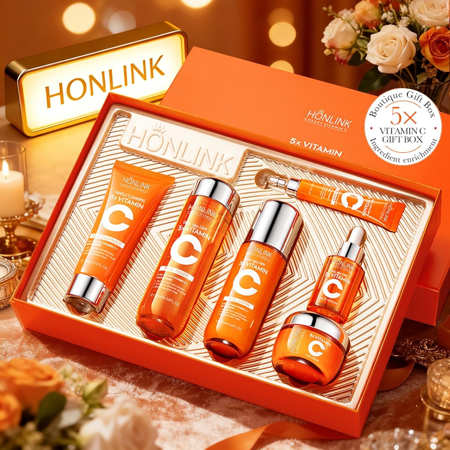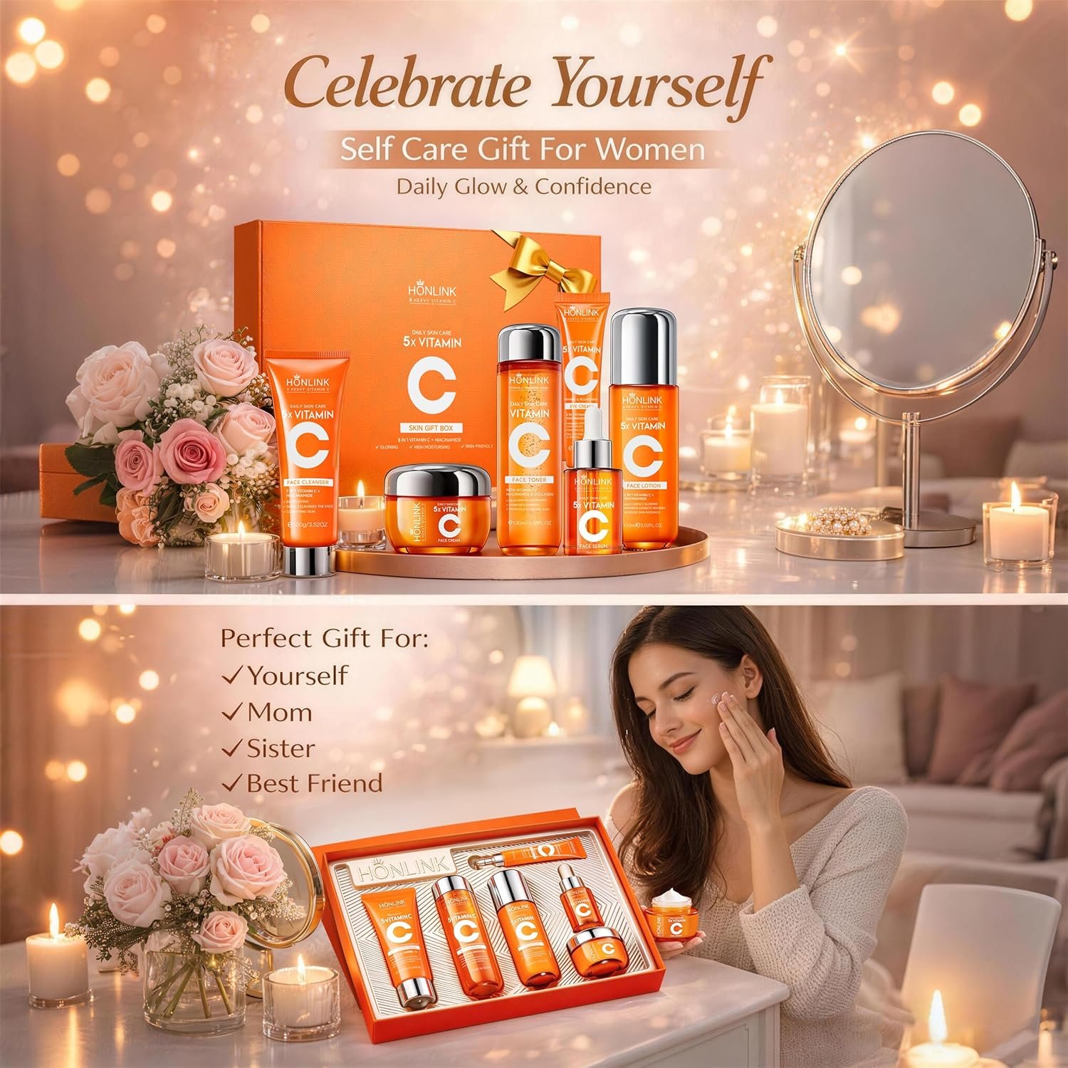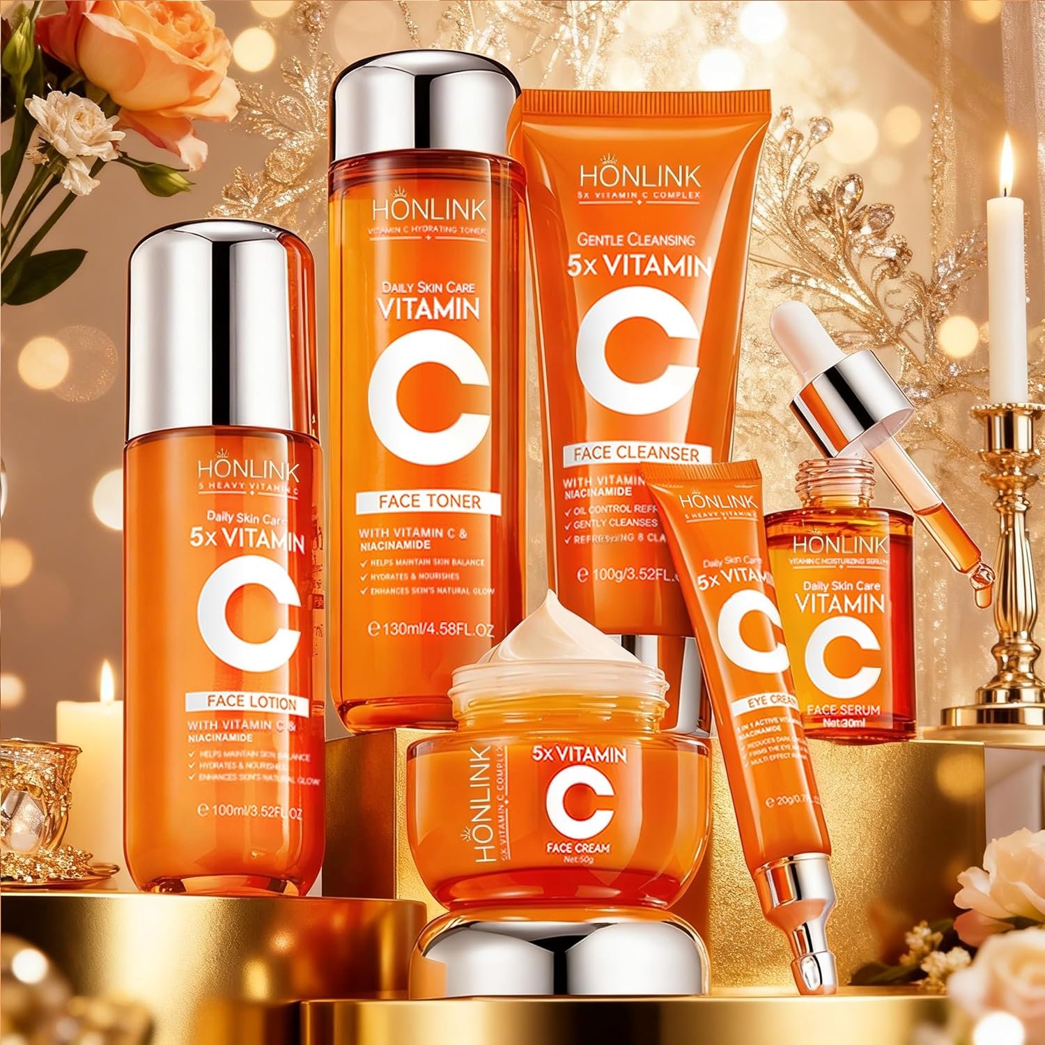 Complete Vitamin C Skincare Routine for Daily Use : A 6-piece skincare set designed to simplify daily face and body care with a coordinated routine in one complete box.