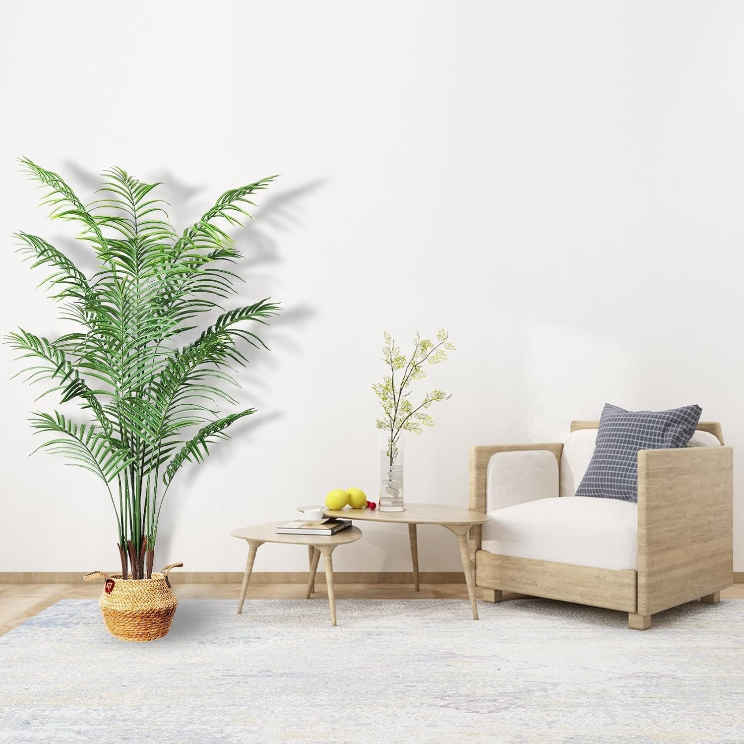 6ft Tall Artificial Palm Plant: Standing at 6 feet tall, this artificial palm plant brings vibrant greenery and life to any room. Its towering presence makes it a striking centerpiece in living rooms, bedrooms, or offices, seamlessly blending in and enhancing the overall aesthetic