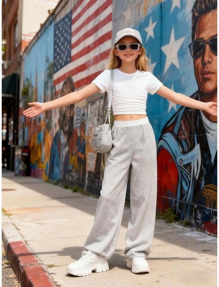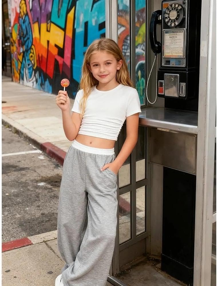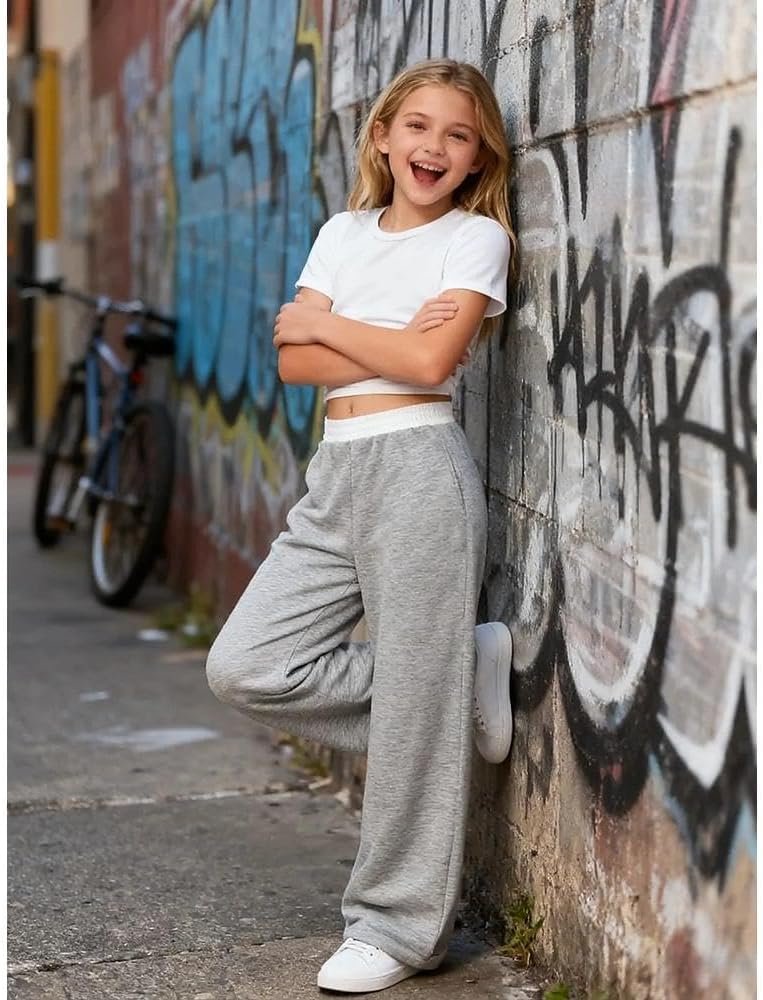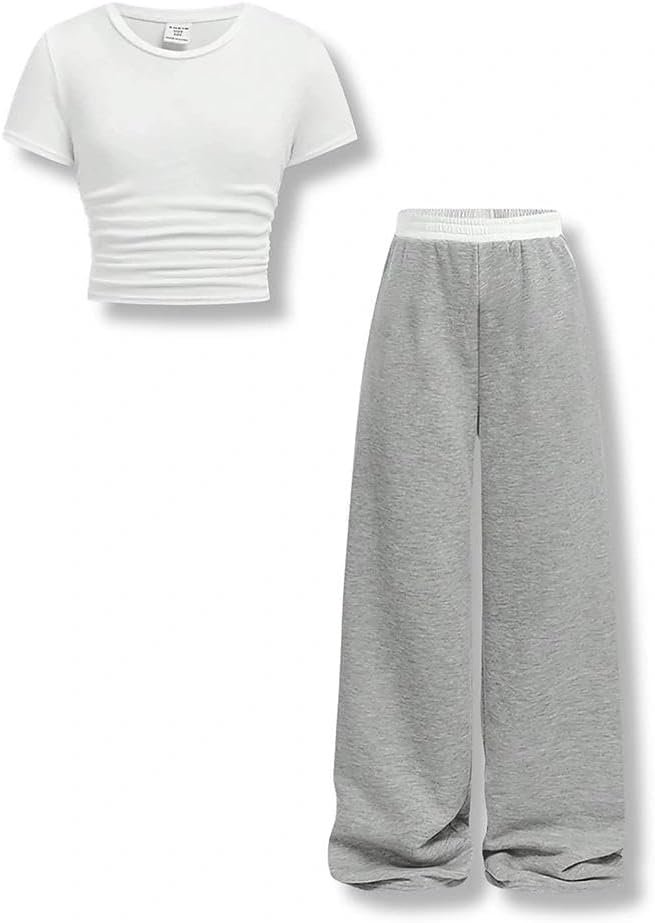 7-14 Years Girls Sizes 2 Piece Casual Set Ruched Short Sleeve Fitted Waist-Cinched Top & Wide Leg Pants