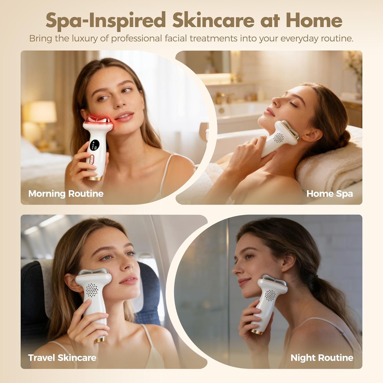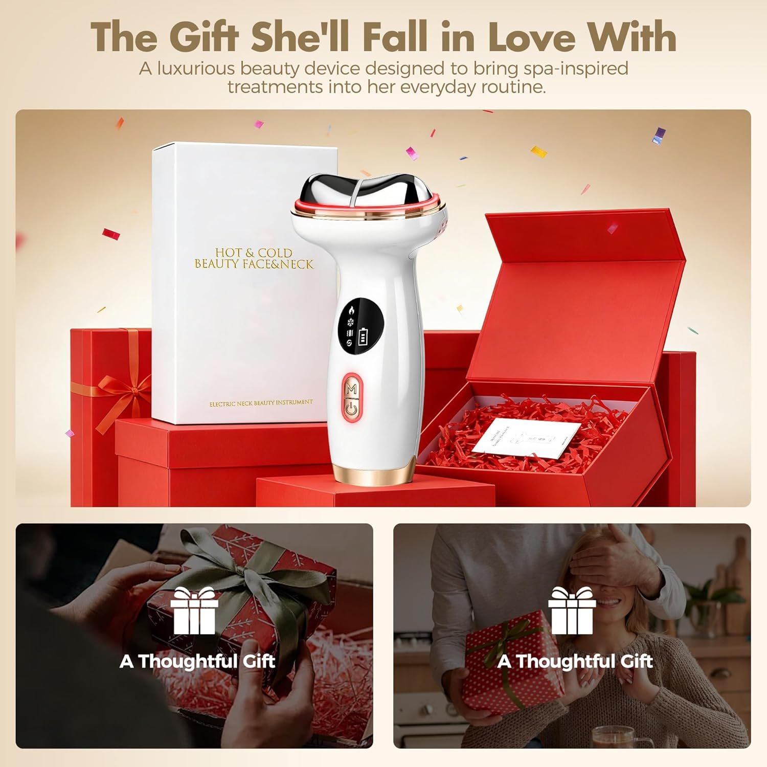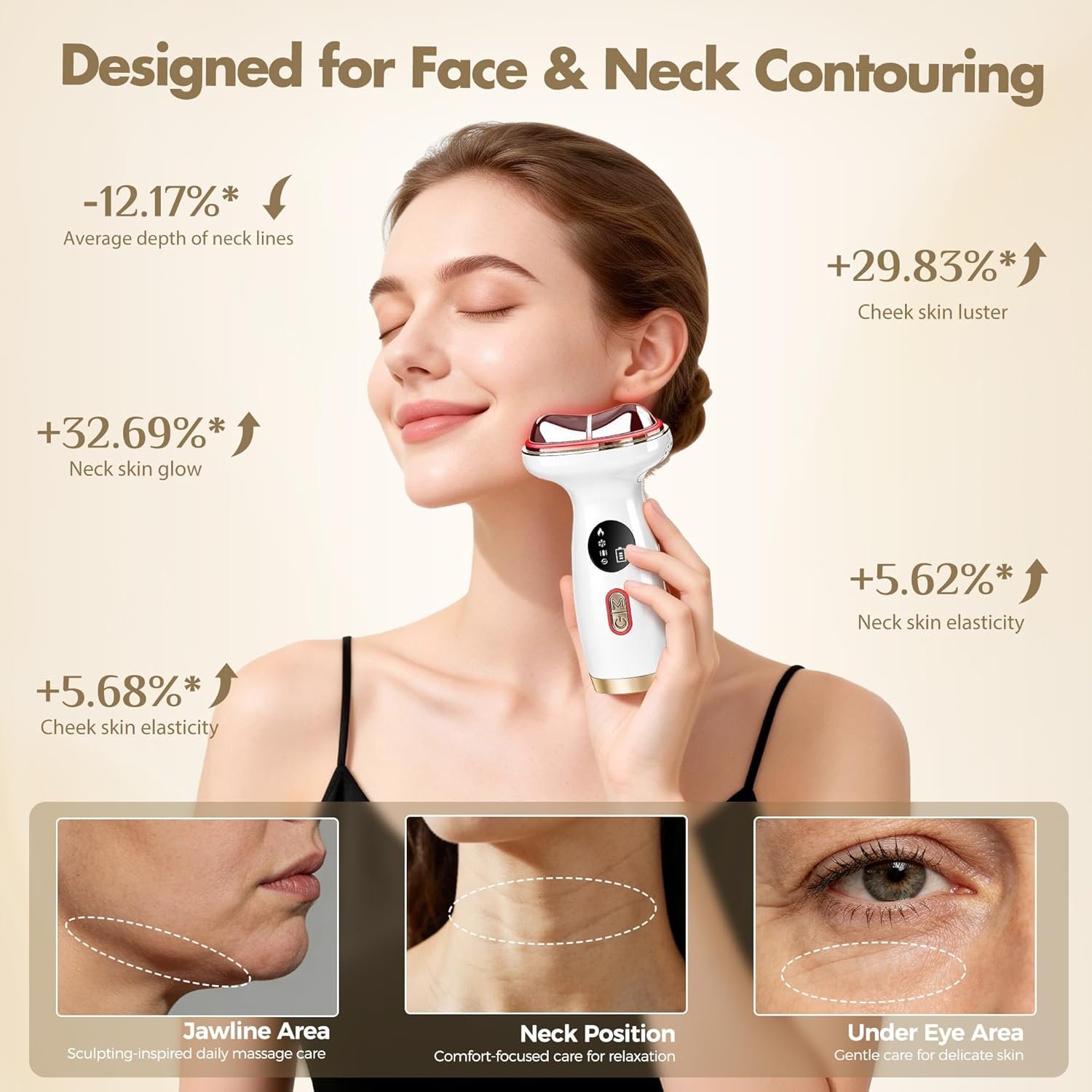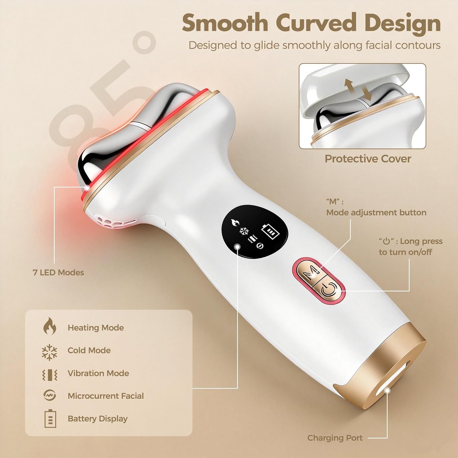 【Gua Sha Facial Tools】This neck massager with heat features an ergonomic design with an 85° concave metal head that better conforms to the contours of the face and neck. Compared to typical beauty device heads, this electric gua sha massager allows for precise care of detailed facial areas (temples, eye area, etc.) and can also massage the shoulders, neck, legs, and forearms. The heating mode provides a more efficient gua sha massage experience, promoting blood circulation and accelerating the penetration of skincare products such as serums and creams.
