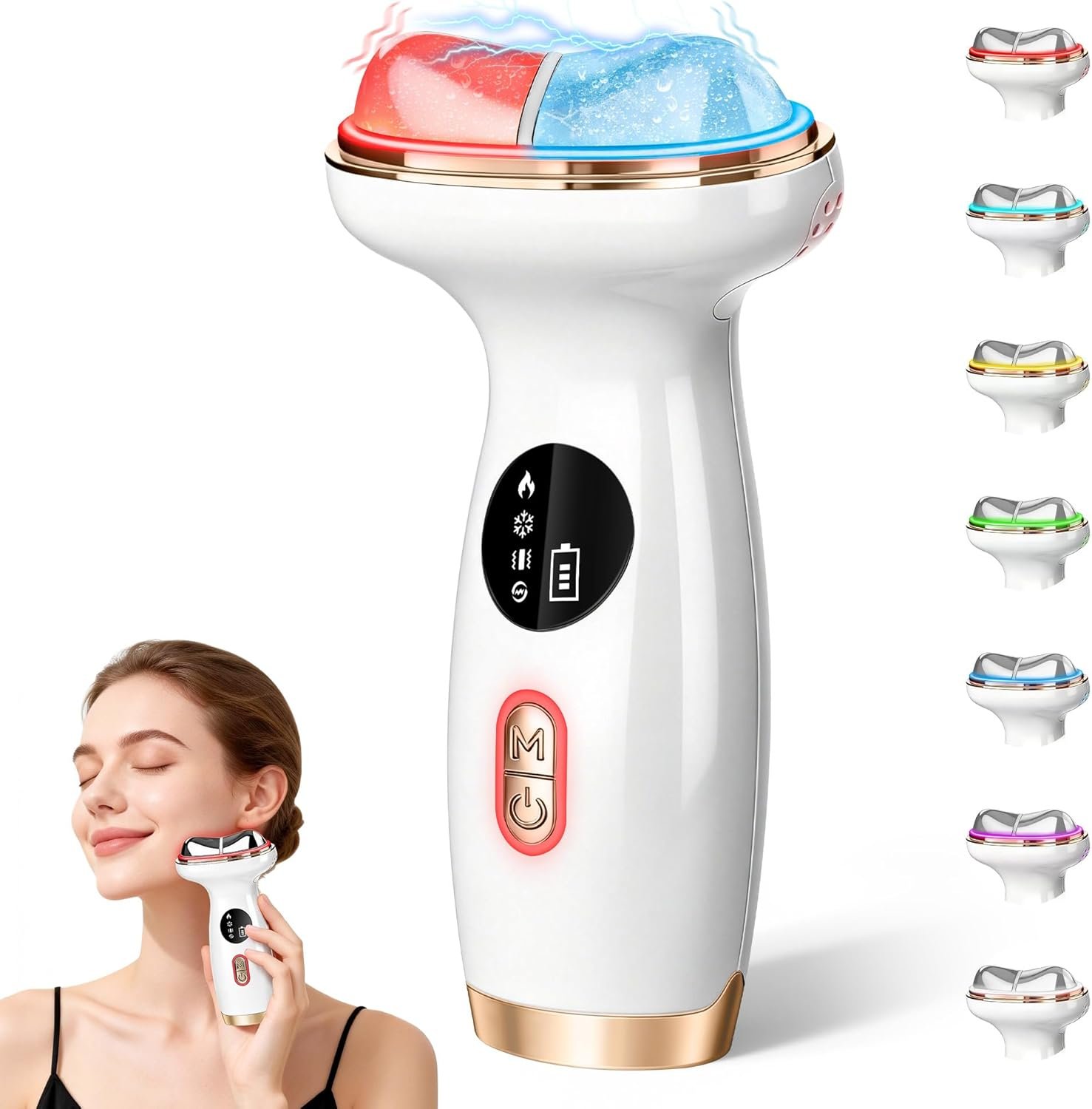 7-in-1 Cold Heated Facial Massager, Red Light Therapy for Face, Portable Microcurrent Facial Device, Cold Face Depuffer to Shaping and Reduce Swelling,Can Tightening Lifting Electric Gua Sha