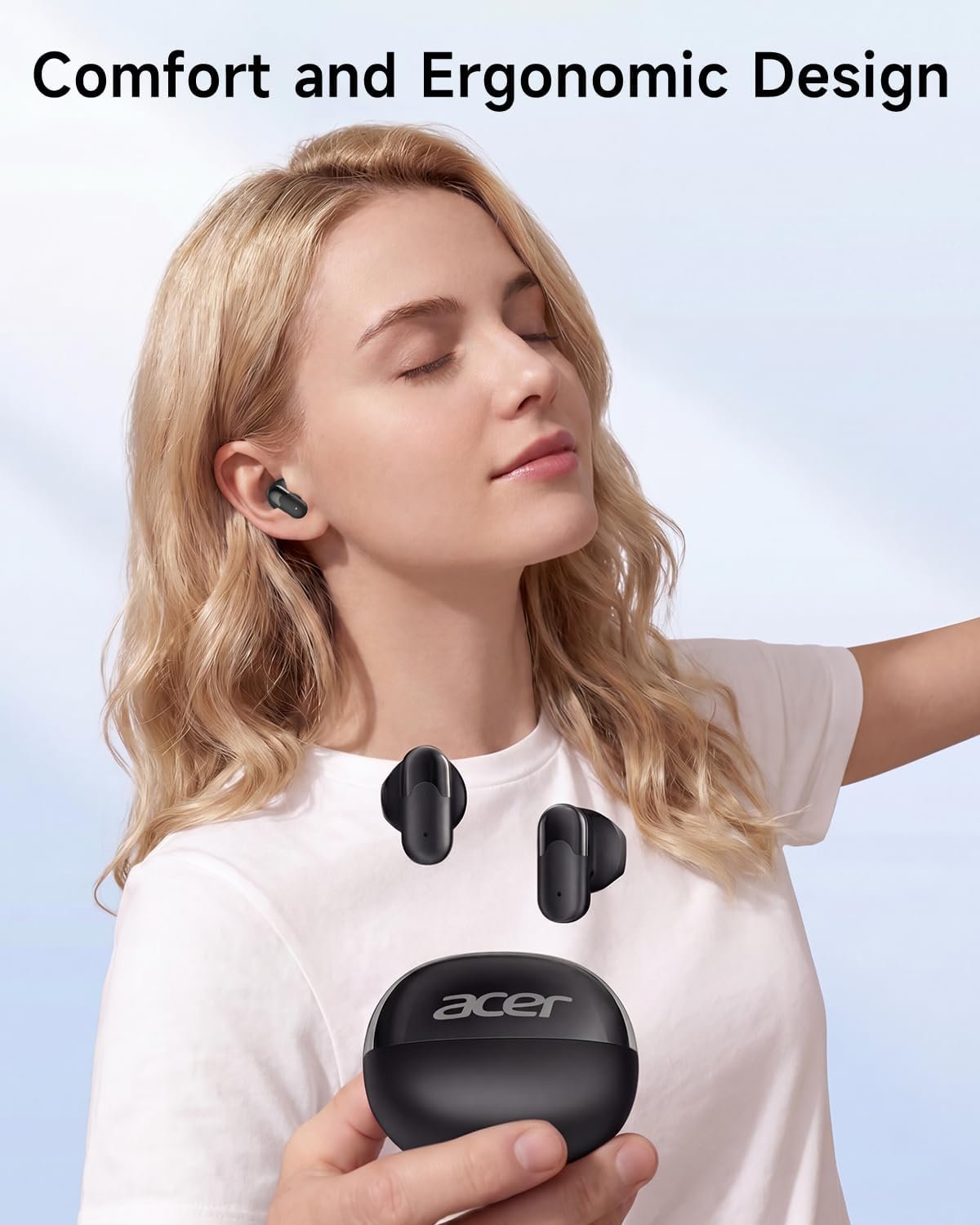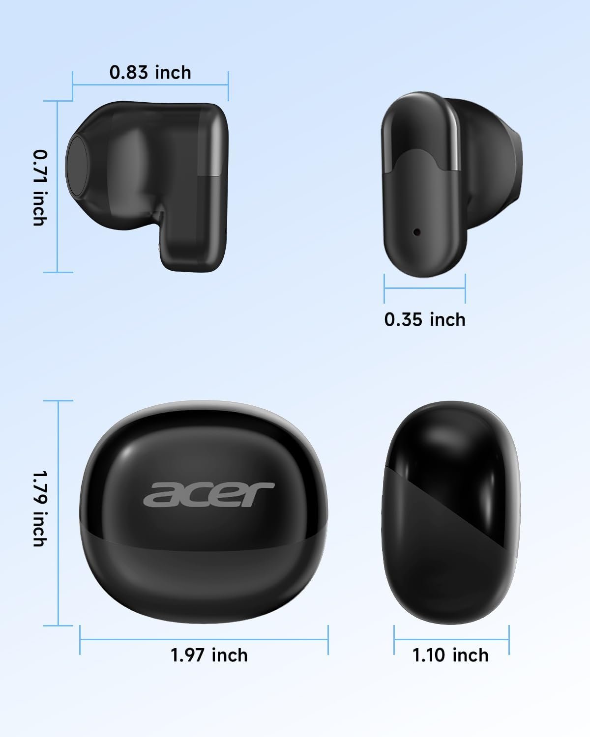 acer Wireless Earbuds, Bluetooth 6.0 Headphones with 35H Playtime, 0.12oz Ultra-Light Ear Buds, 13mm Driver for Powerful Bass, Clear Calls Mic, Water&Dust Resistant Earphones for Office/Commute