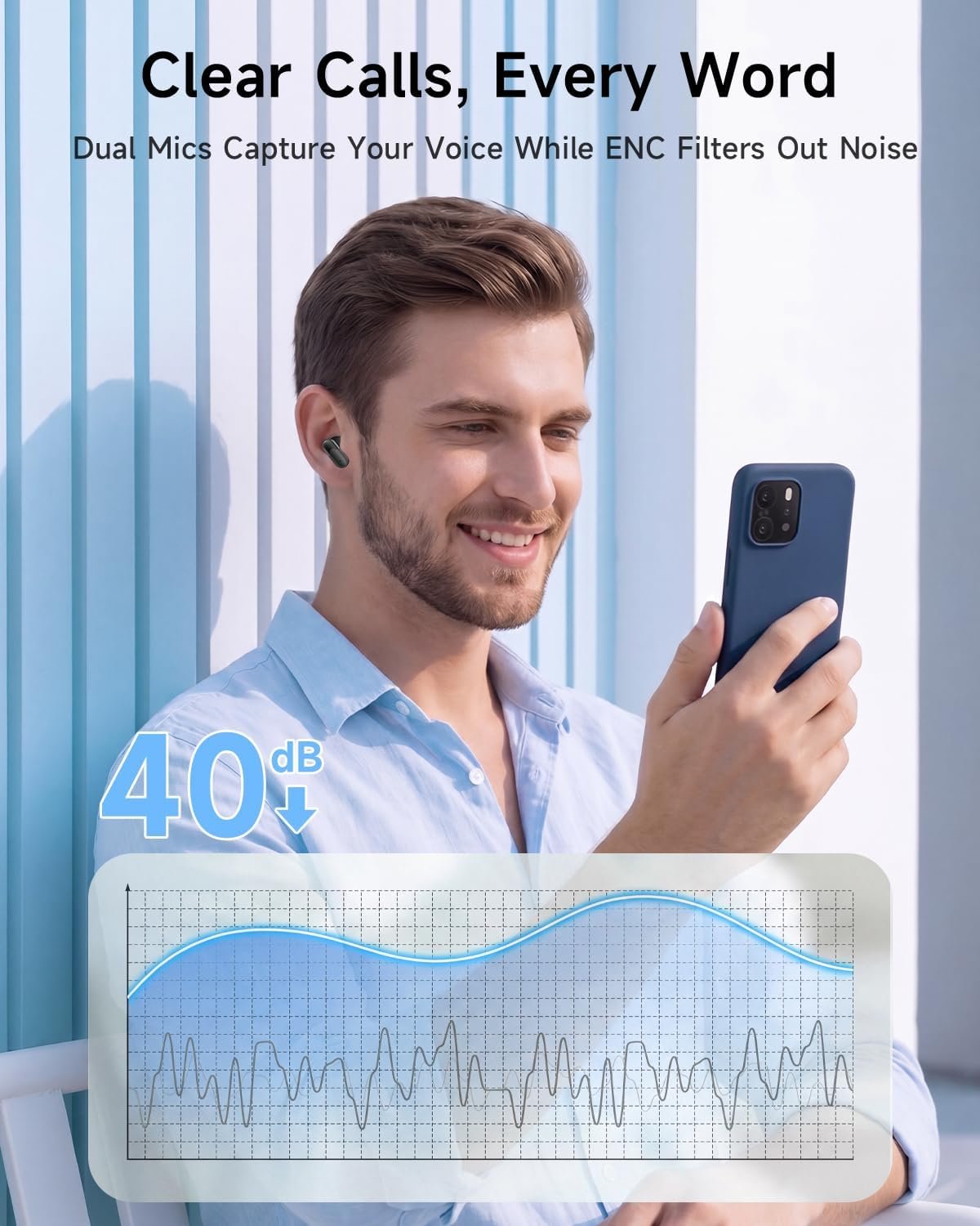ADVANCED BLUETOOTH 6.0 STABILITY: Experience the next generation of wireless freedom. Equipped with the latest Bluetooth 6.0 technology, these in-ear headphones offer lightning-fast, one-step pairing the moment you open the case. Enjoy ultra-low latency and a rock-solid, drop-free connection up to 10 meters away.