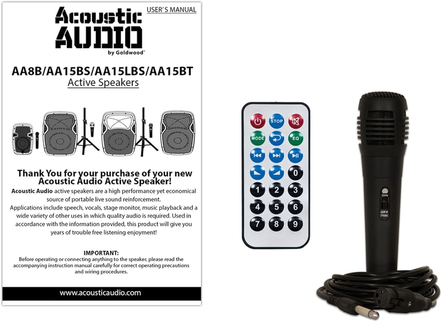 Complete Setup Included: Comes with everything you need—bluetooth speaker with power cord, sturdy stand, wired microphone with cable, MP3 remote, and detailed instruction manual.