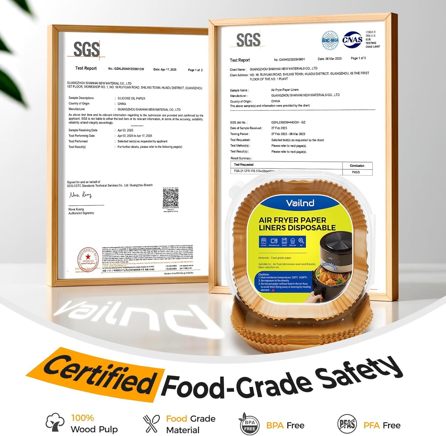 No Complex Cleaning: Vailnd disposable baking paper has food-grade silicone oil coating and round bowl shape design, can protect the air fryer inner surface from food mess and sticking. A must-have air fryer accessory to keep your Ninja air fryer clean