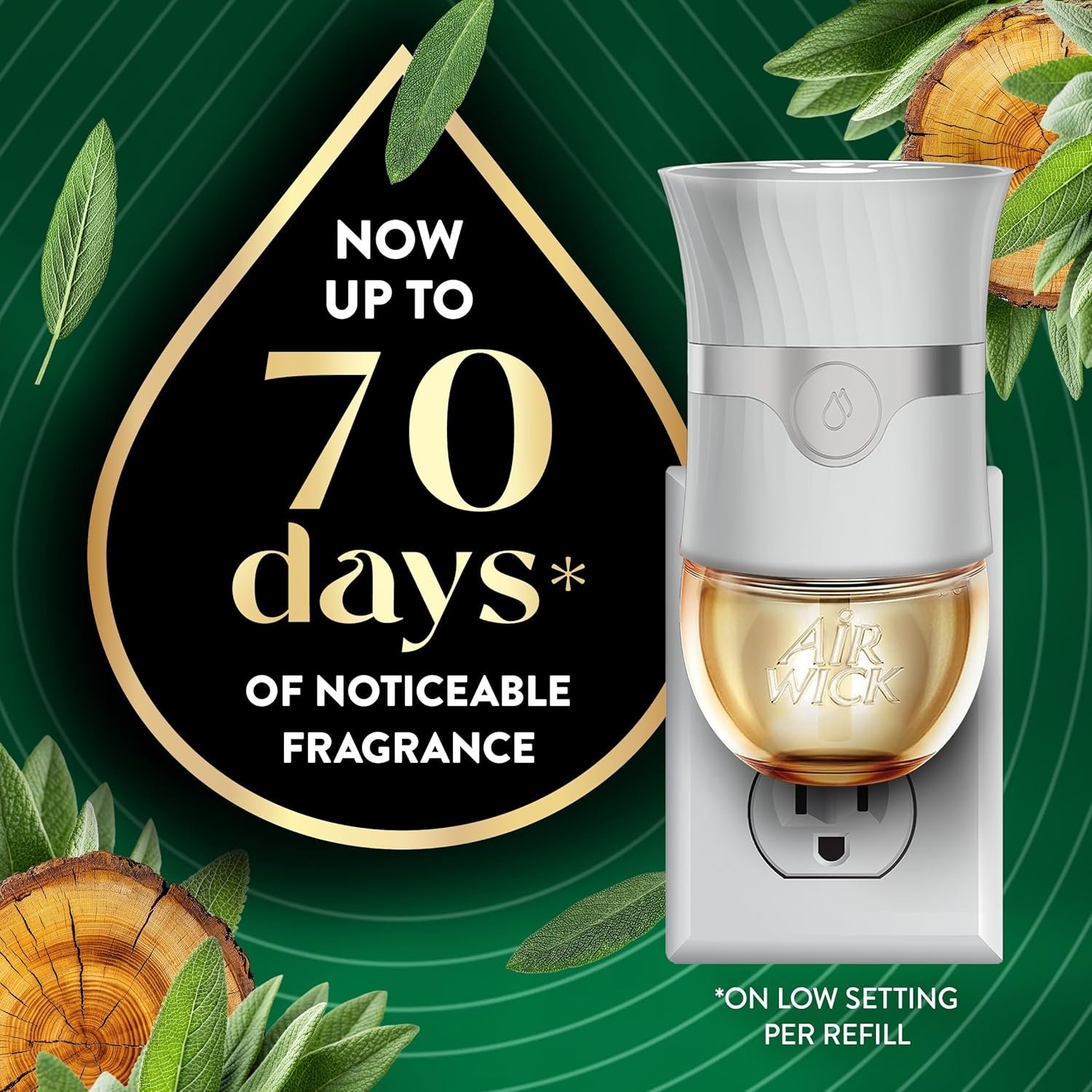 AIR WICK® Vibrant Plug In Scented Oil Air Freshener Refill Pack – 4 Count Vibrant Oil Refill White Sage & Mahogany 4 ct., Essential Oils