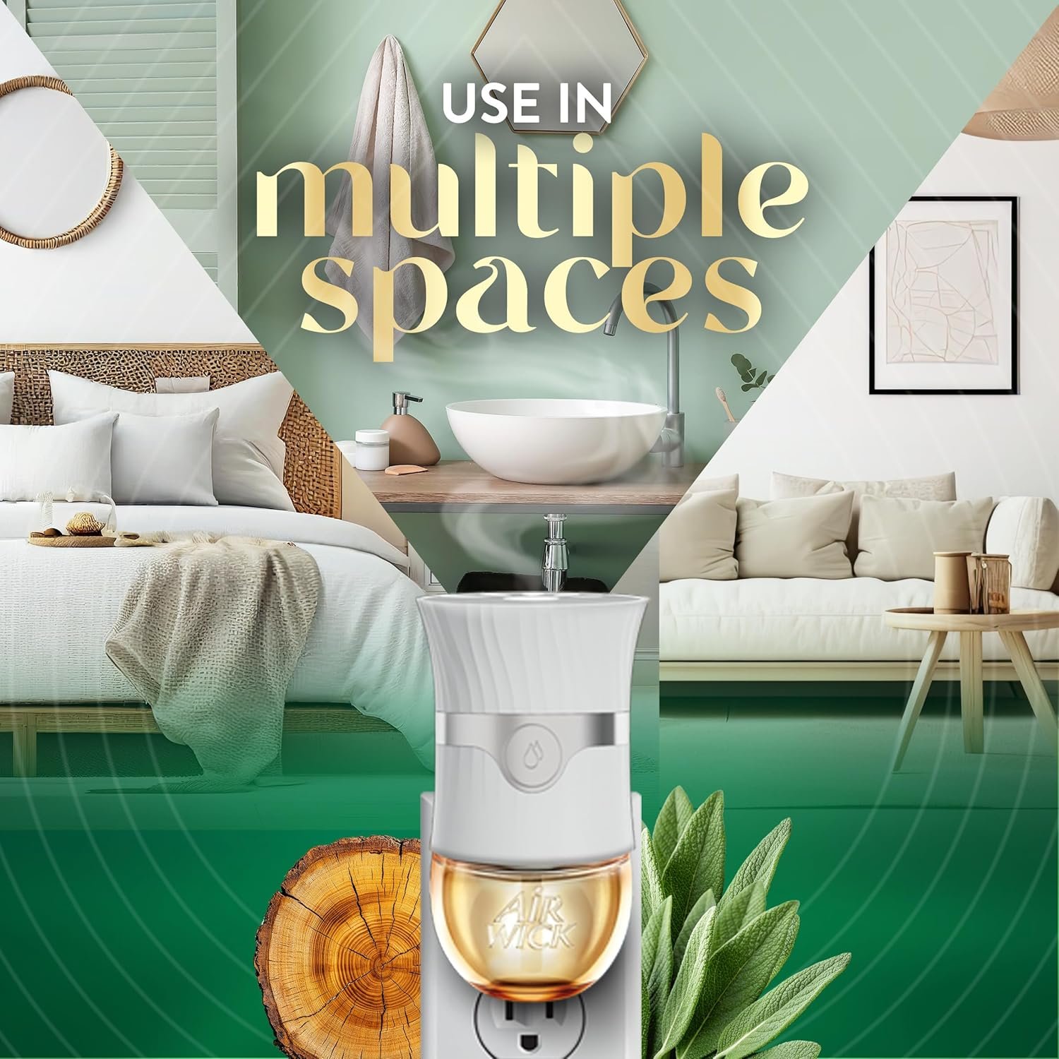 Air Wick Vibrant Plug In Scented Oil Refill, Infused with Essential Oils, Plug In Air Fresheners for Home, White Sage & Mahogany, 4 ct