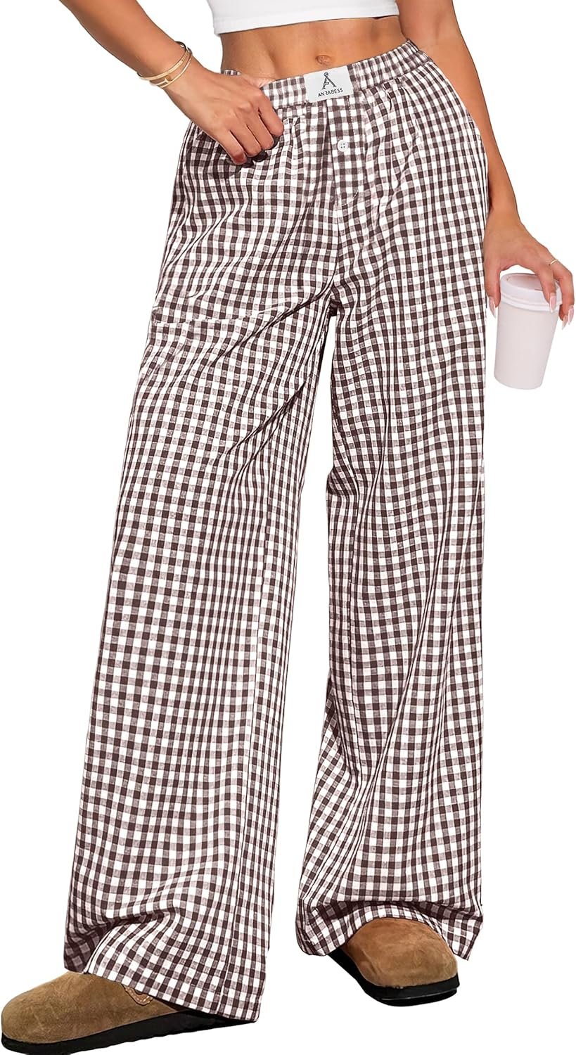 ANRABESS Women’s Gingham Pants – Casual Lounge Pajama Bottoms for Home Sleep Resort Wear