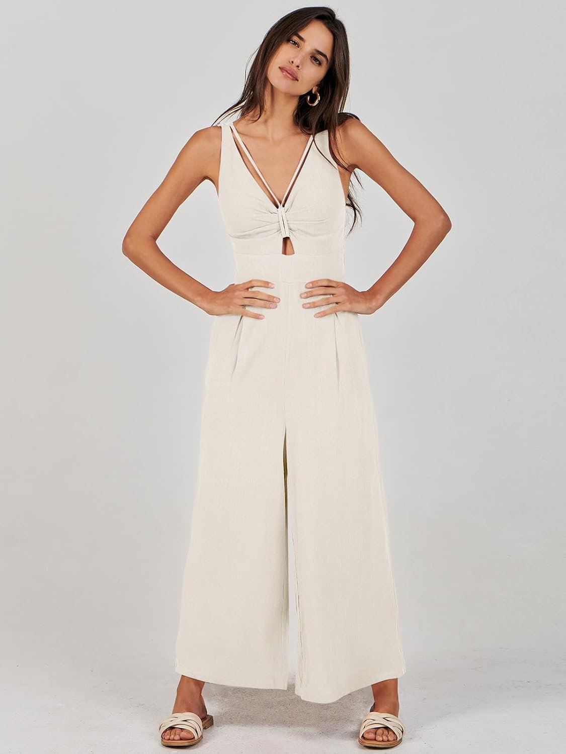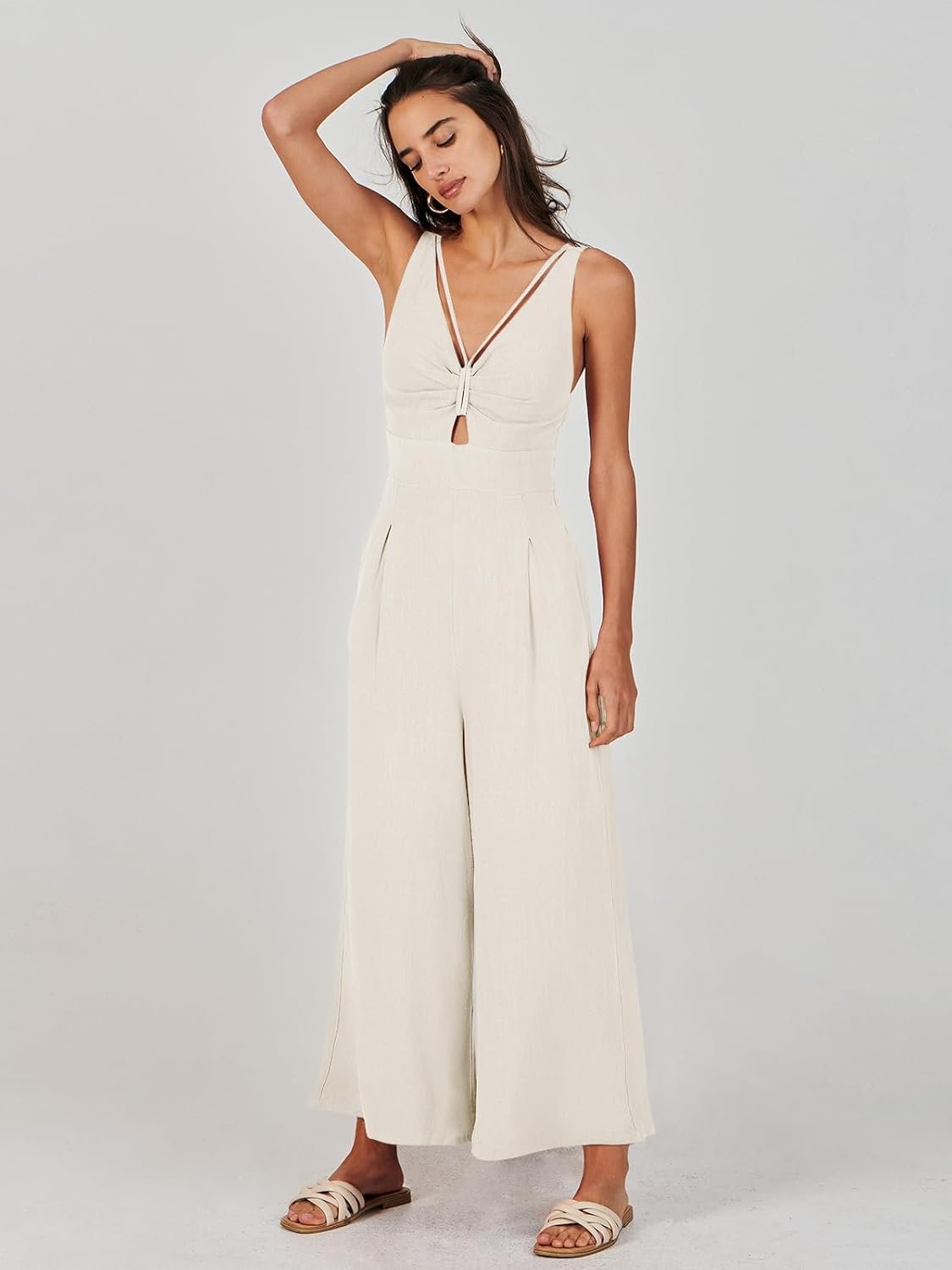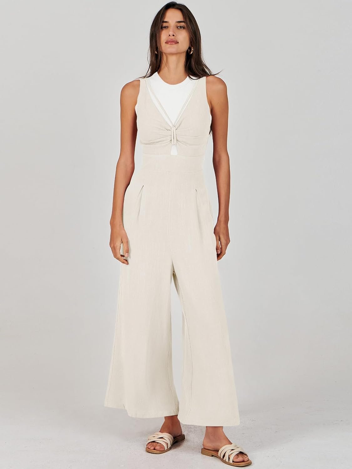 ANRABESS Womens Jumpsuits Summer Linen Wide Leg Sleeveless V Neck Casual Dressy Rompers Pants 2026 Spring Vacation Outfits