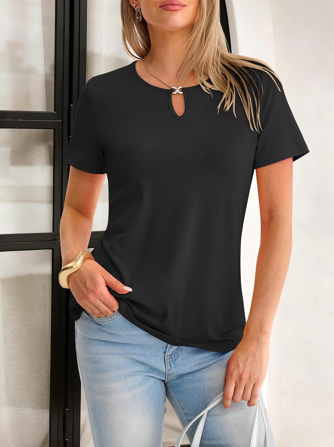 ANRABESS Womens Short Sleeve Tops Summer Tshirts Cute Keyhole Neck Casual Basic Tee Dressy Work 2026 Spring Trendy Outfits