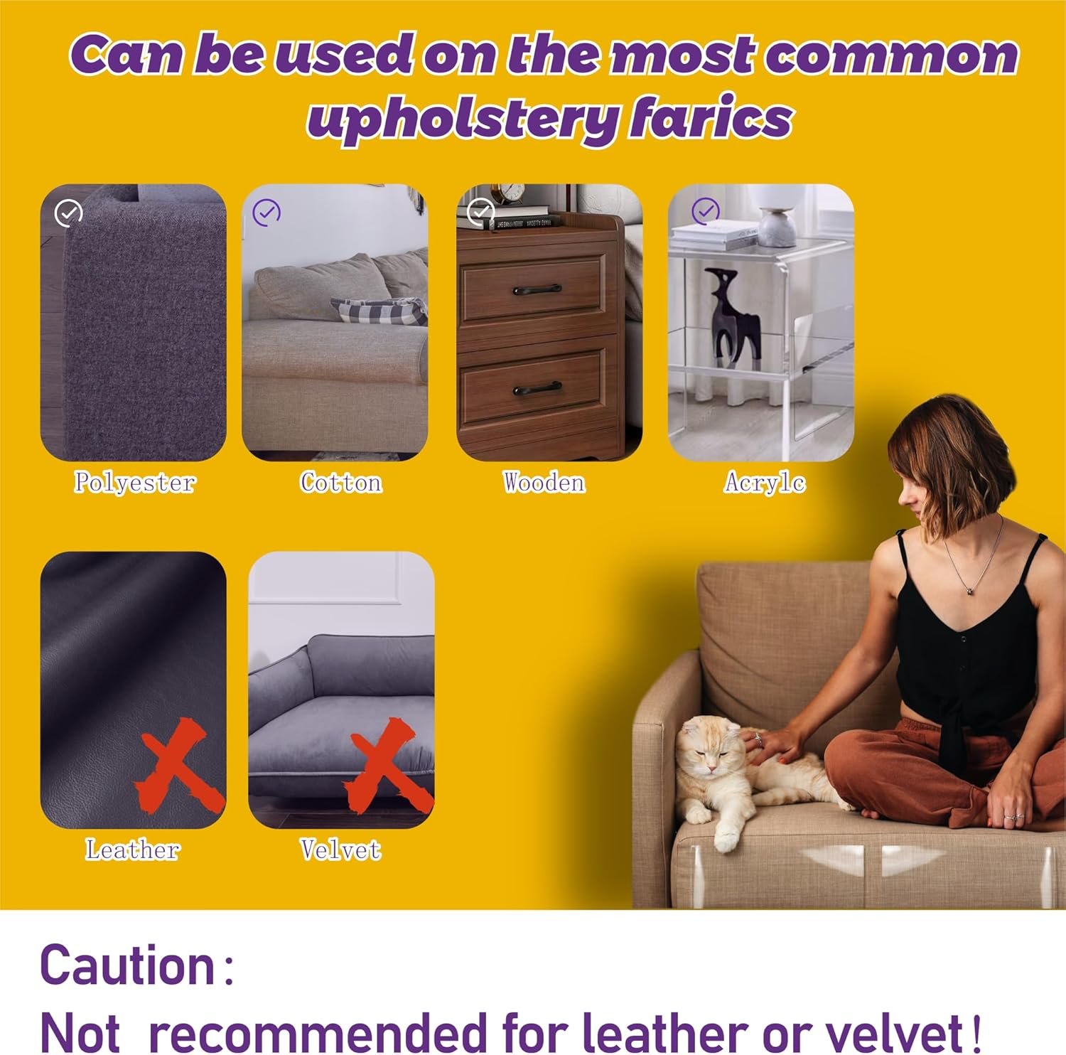 Warning: We do not recommend to use this tape for cat on velvet sofa or leather furniture.To achieve better adhesion,please clean the surface of the area to be adhered before use.