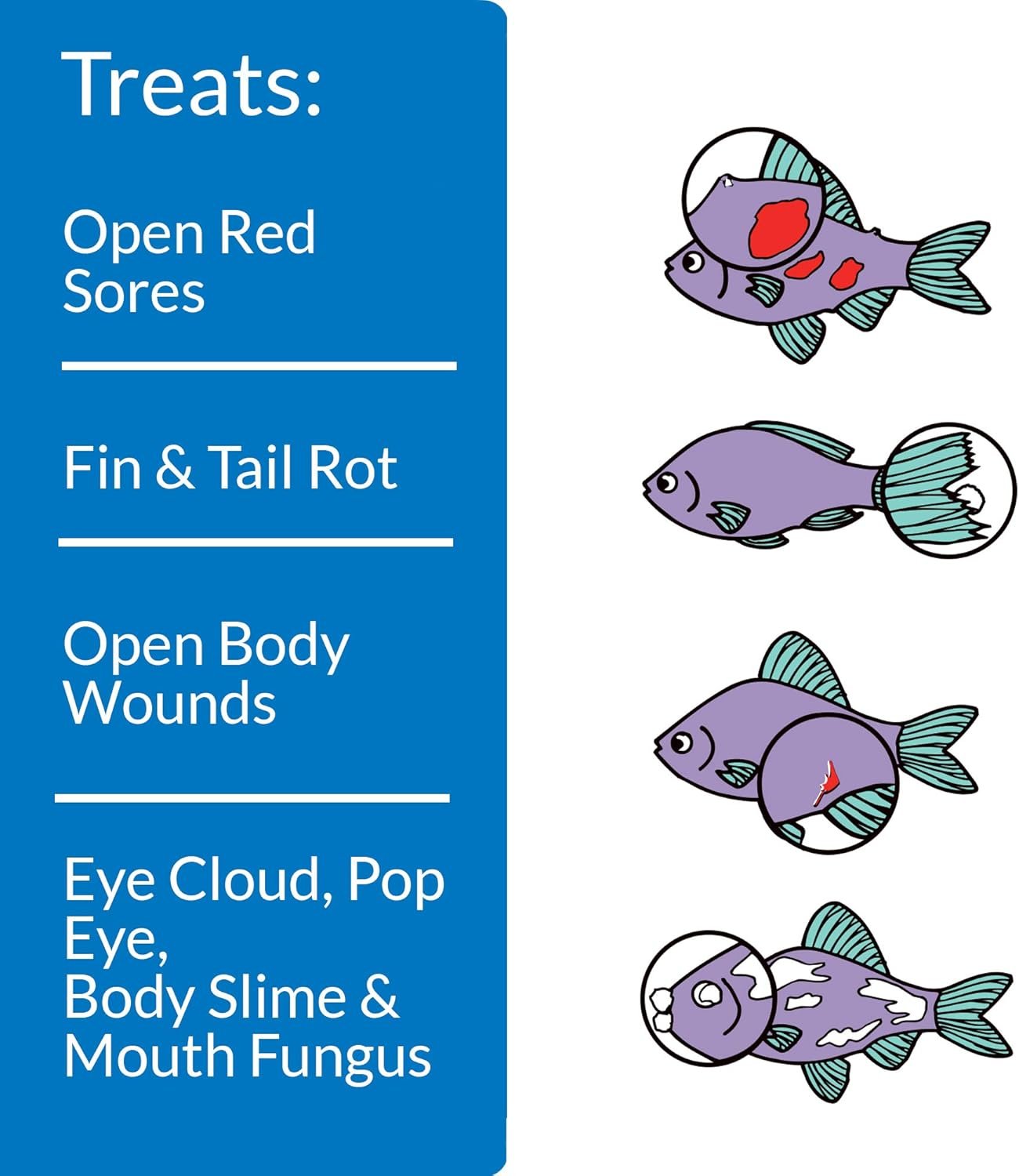 Heals bacterial infections and repairs damaged fins, ulcers and open wounds