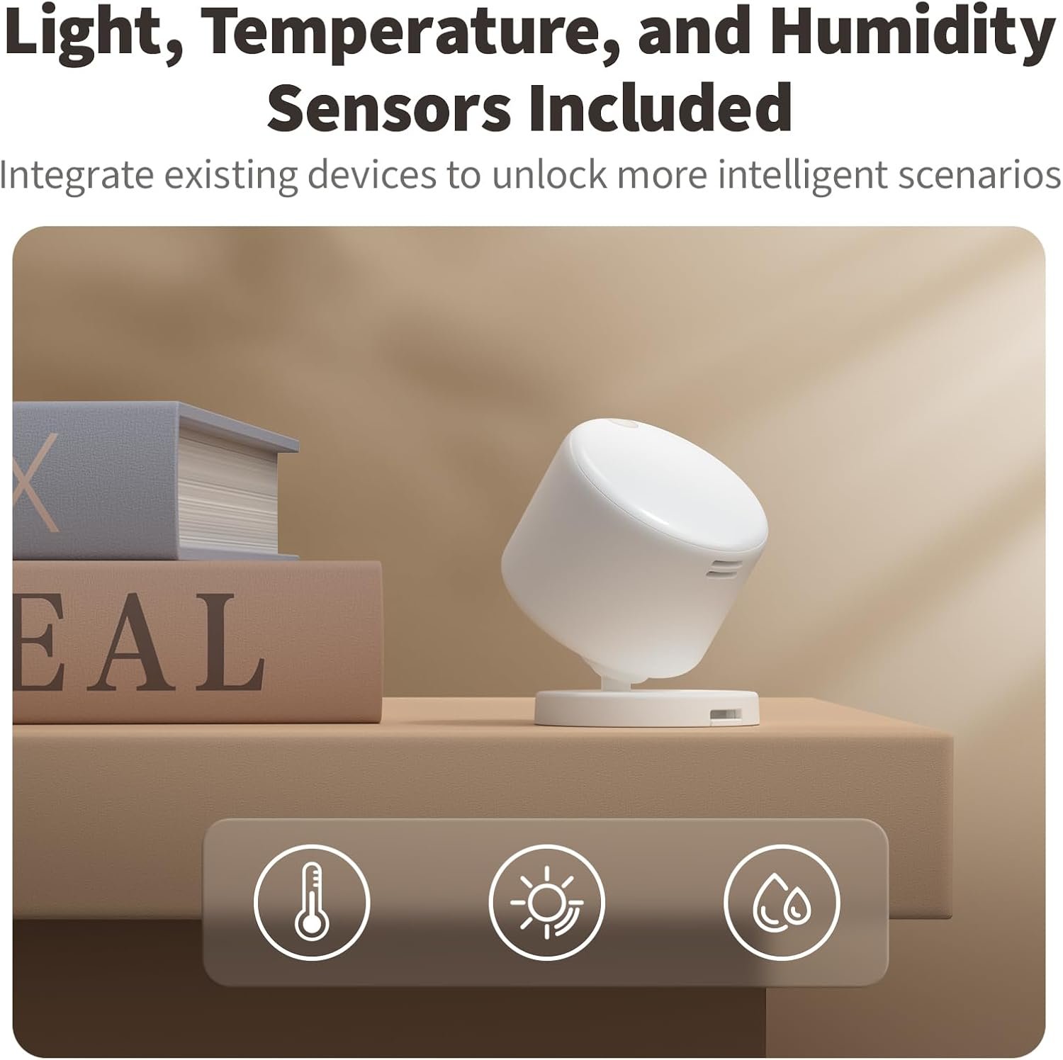 [5-in-1 Multi-Sensor] Combines 60GHz mmWave, PIR, light, temperature, and humidity sensors into one compact device. This all-in-one design enables precise detection of presence and environmental conditions, helping automate lighting, climate control, and security systems for a smarter and more energy-efficient home.
