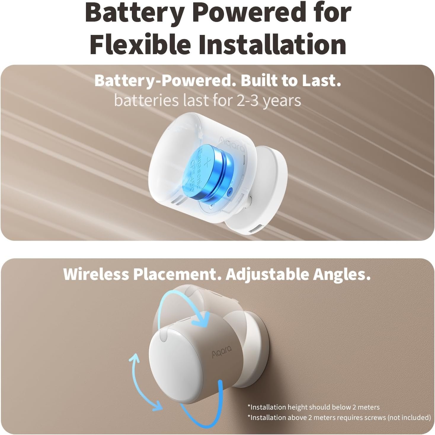 [Wire-Free & Flexible Installation] Completely wireless with a multi-axis adjustable mount for easy wall, ceiling, or corner setup. No wiring required—relocate anytime for optimal detection and coverage. Featuring a 120° field of view and up to 6 m (20 ft) of detection range, the FP300 can effectively monitor various room layouts. Its minimalist design blends seamlessly into any modern interior, delivering powerful functionality without visual clutter.