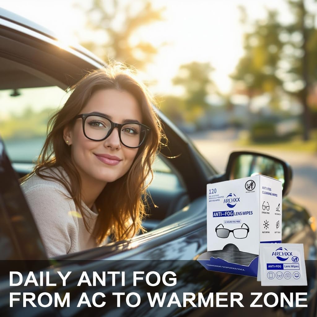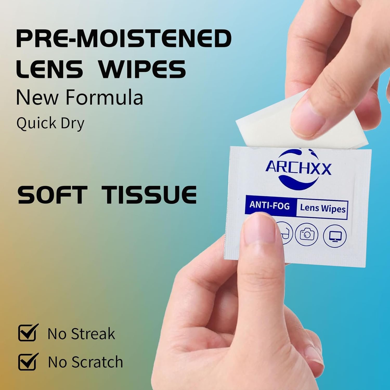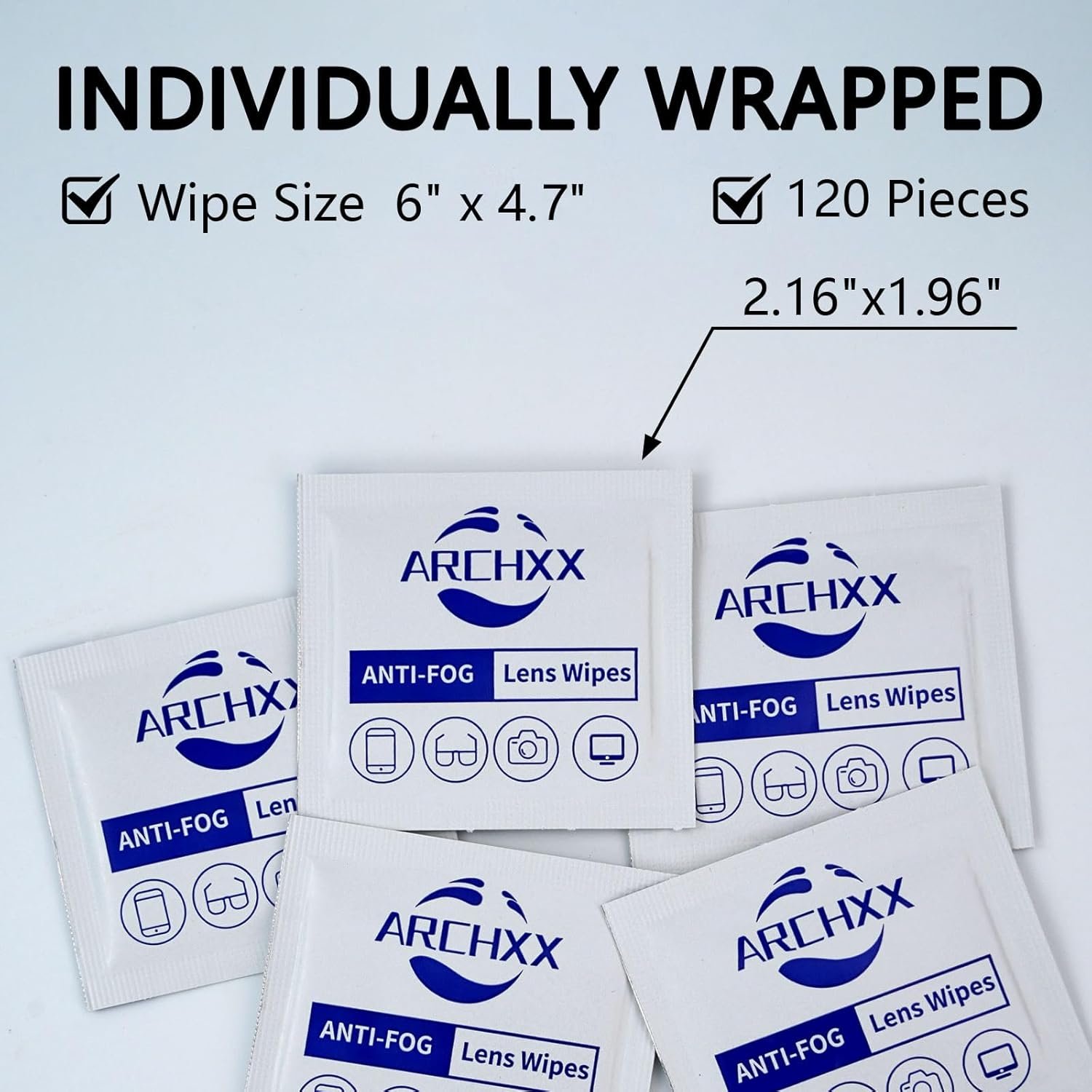 ARCHXX Anti Fog Wipes for Glasses, 120 Count,Pre-Moistened Cleaning Wipes, Lens Cleaner Wipe for Eyeglasses,Sunglasses,Goggles,Screen,Phone,Individually Wrapped Eye Glasses Cleaner