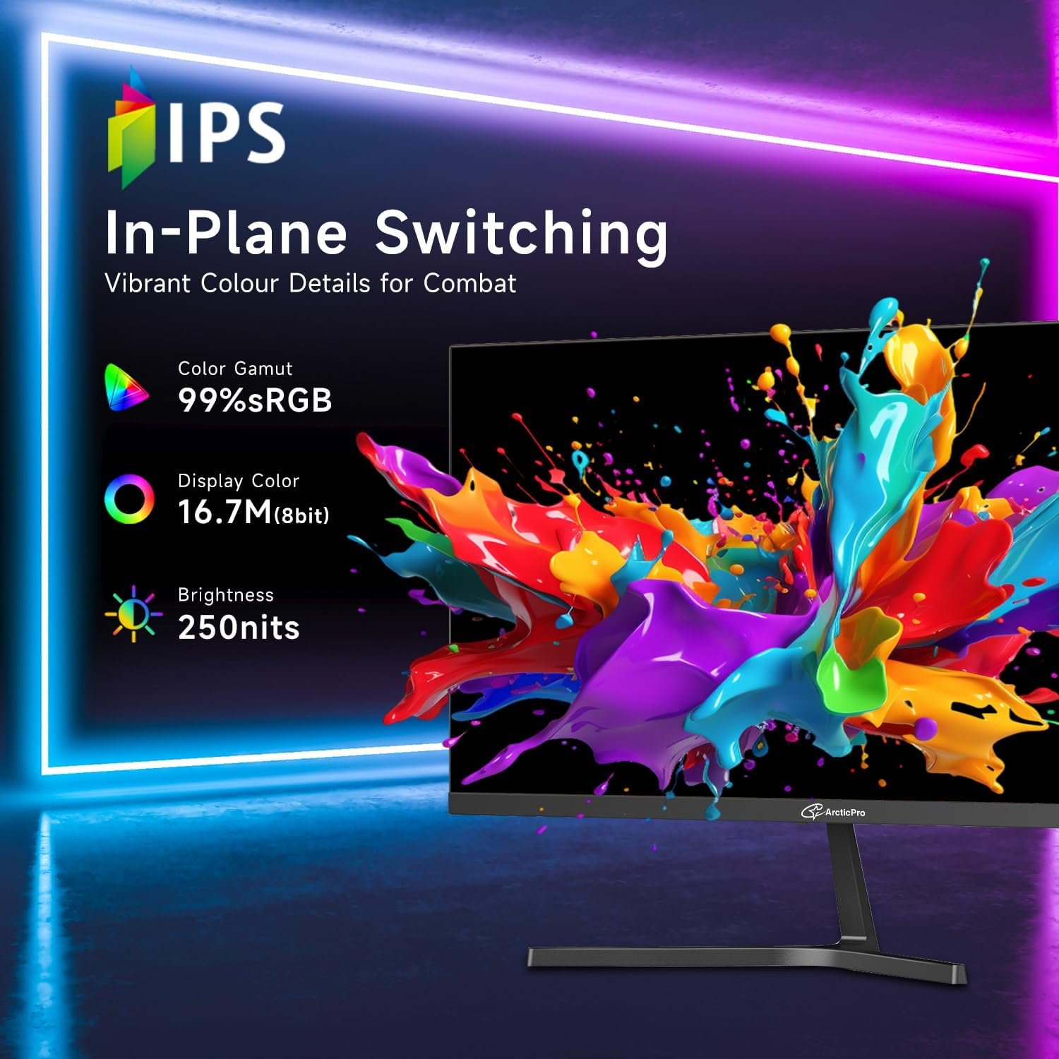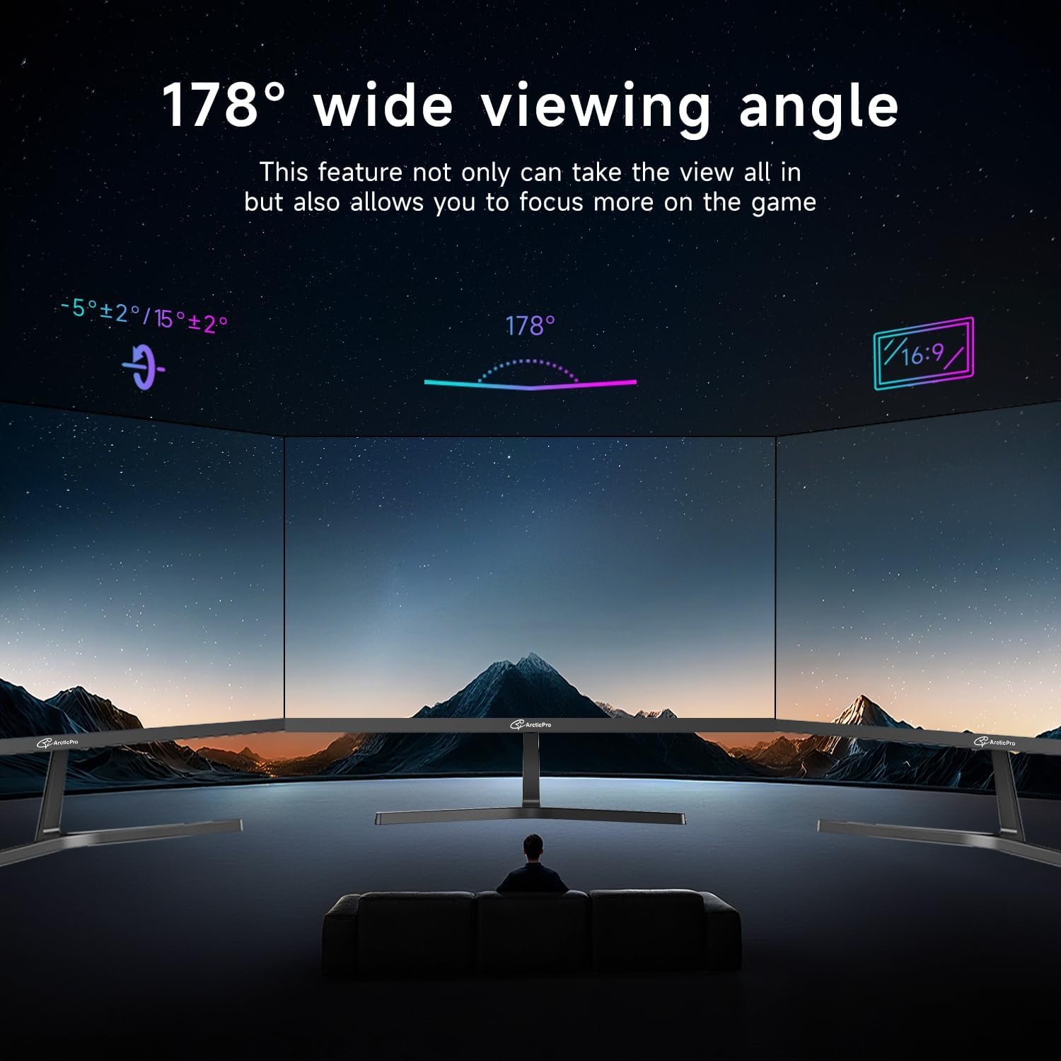 [Stunning Visuals] The ArcticPro monitor features a 16:9 aspect ratio and 1920×1080 Full HD resolution, delivering stunningly clear picture quality with richer colors and sharper details for an immersive viewing experience.