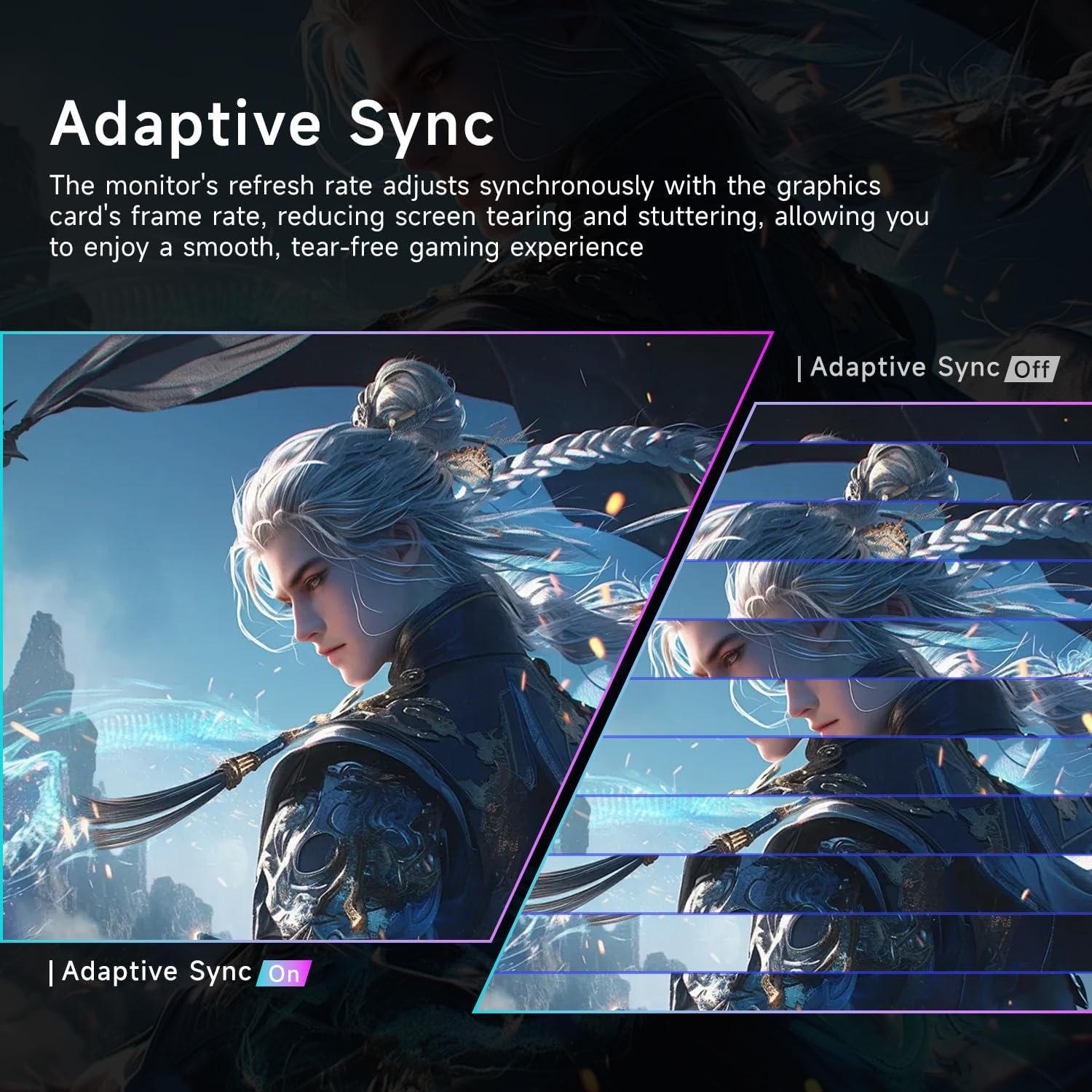 [Adaptive Sync] With adaptive sync technology, it effectively solves picture lagging and tearing problems; Watch movies and play games without any interruptions. Even fast scenes look seamless and smooth.