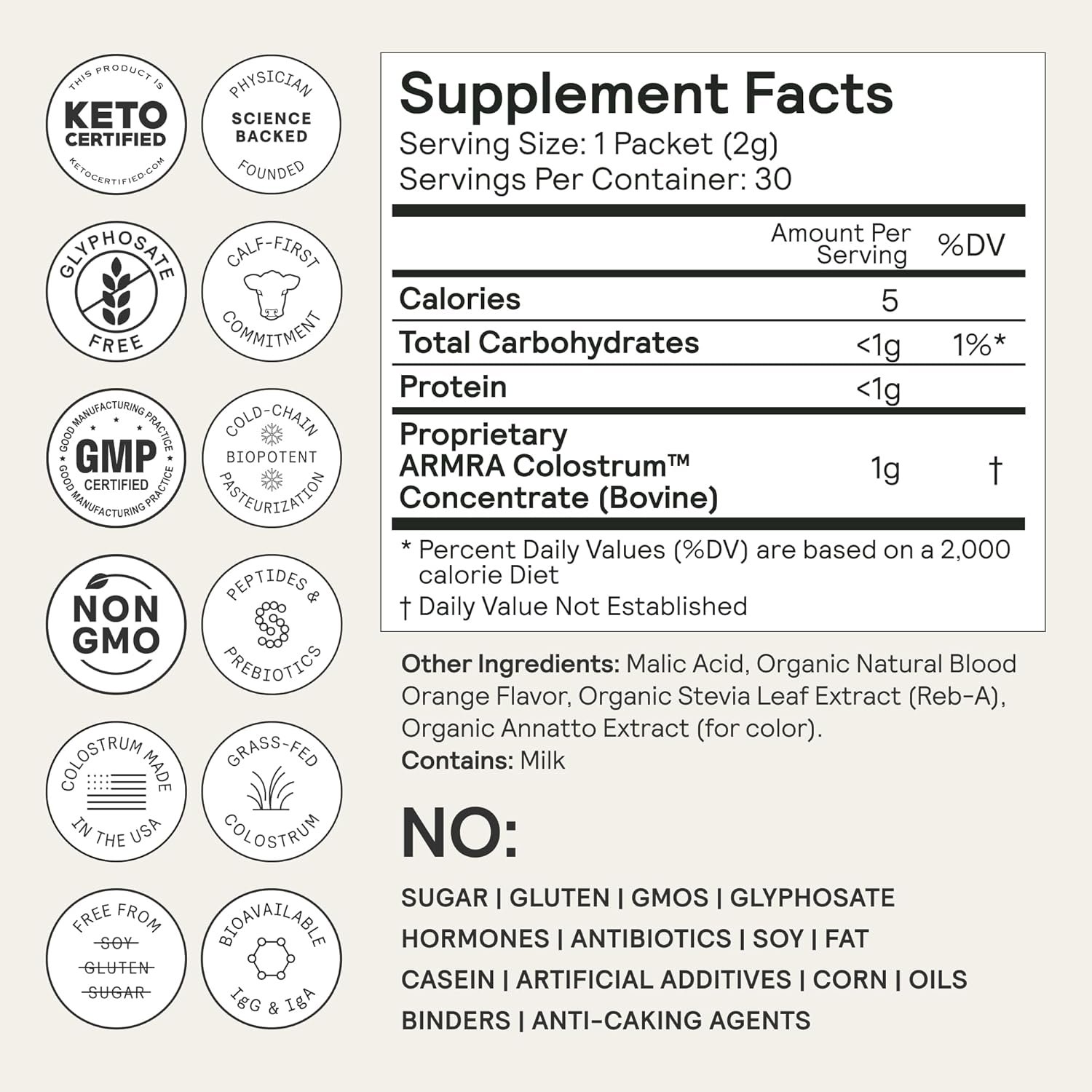 ARMRA Colostrum™ Powder | Blood Orange | Gut Health & Bloating | Skin & Hair | Immunity | Keto, Gluten & Fat-Free | 30 Servings