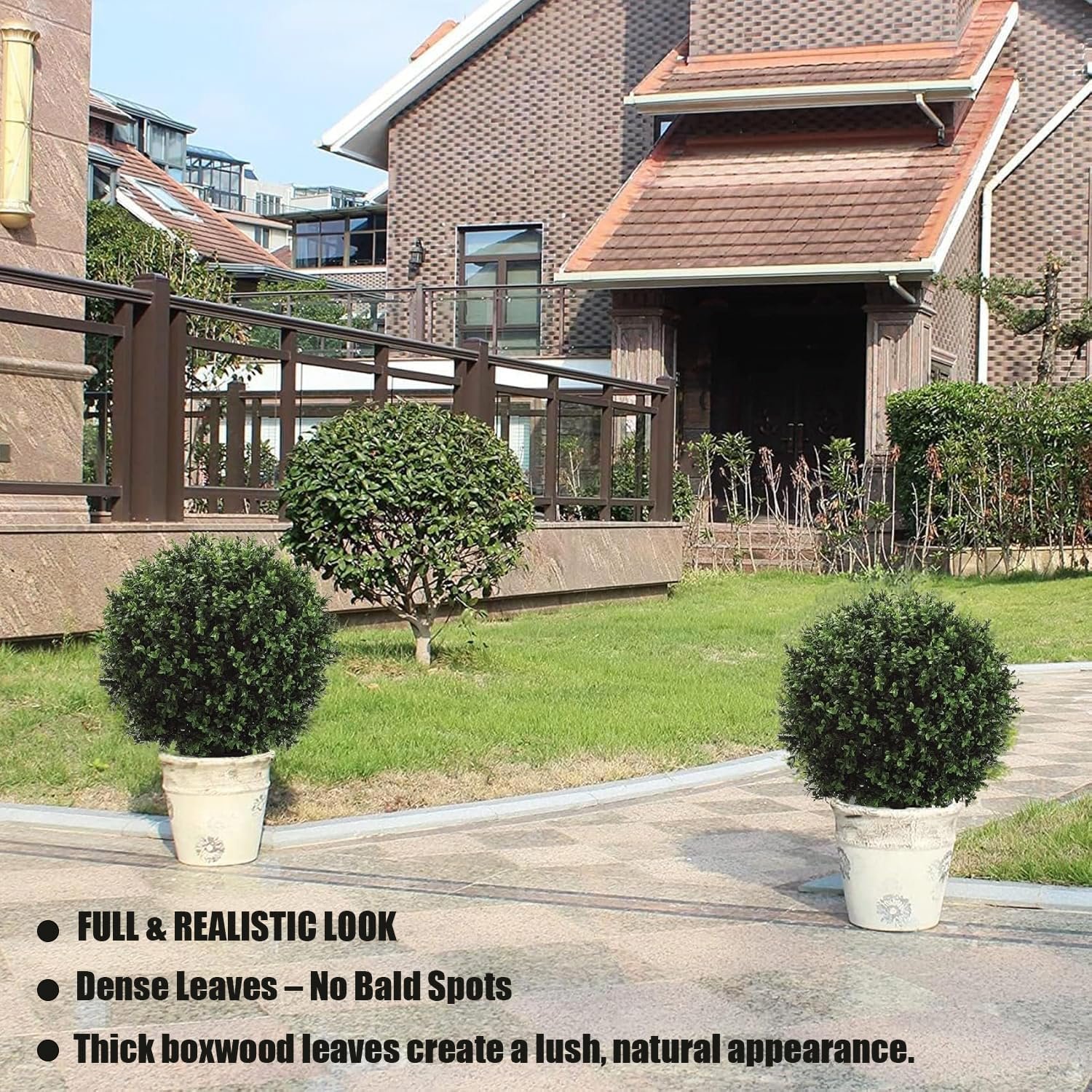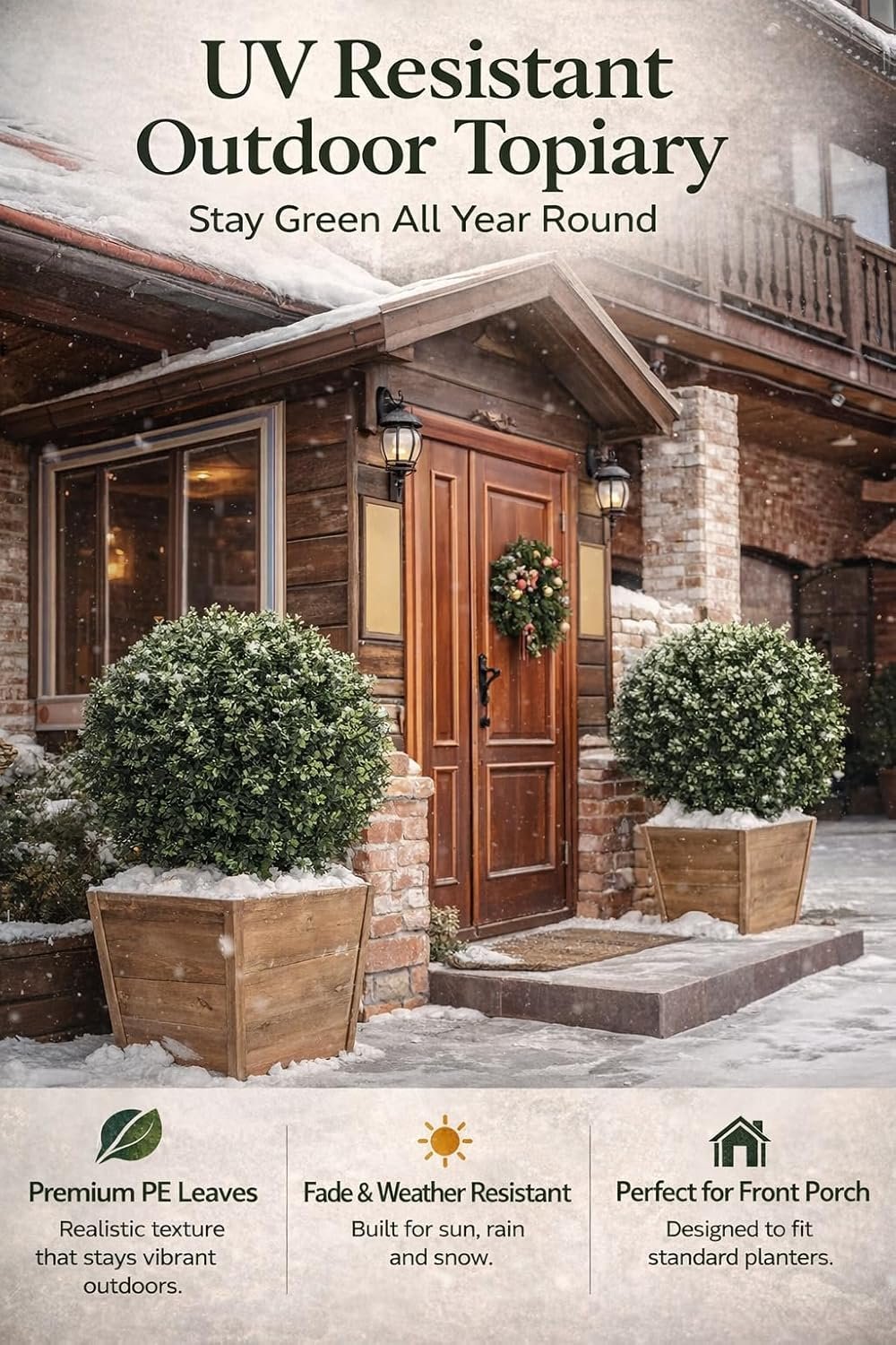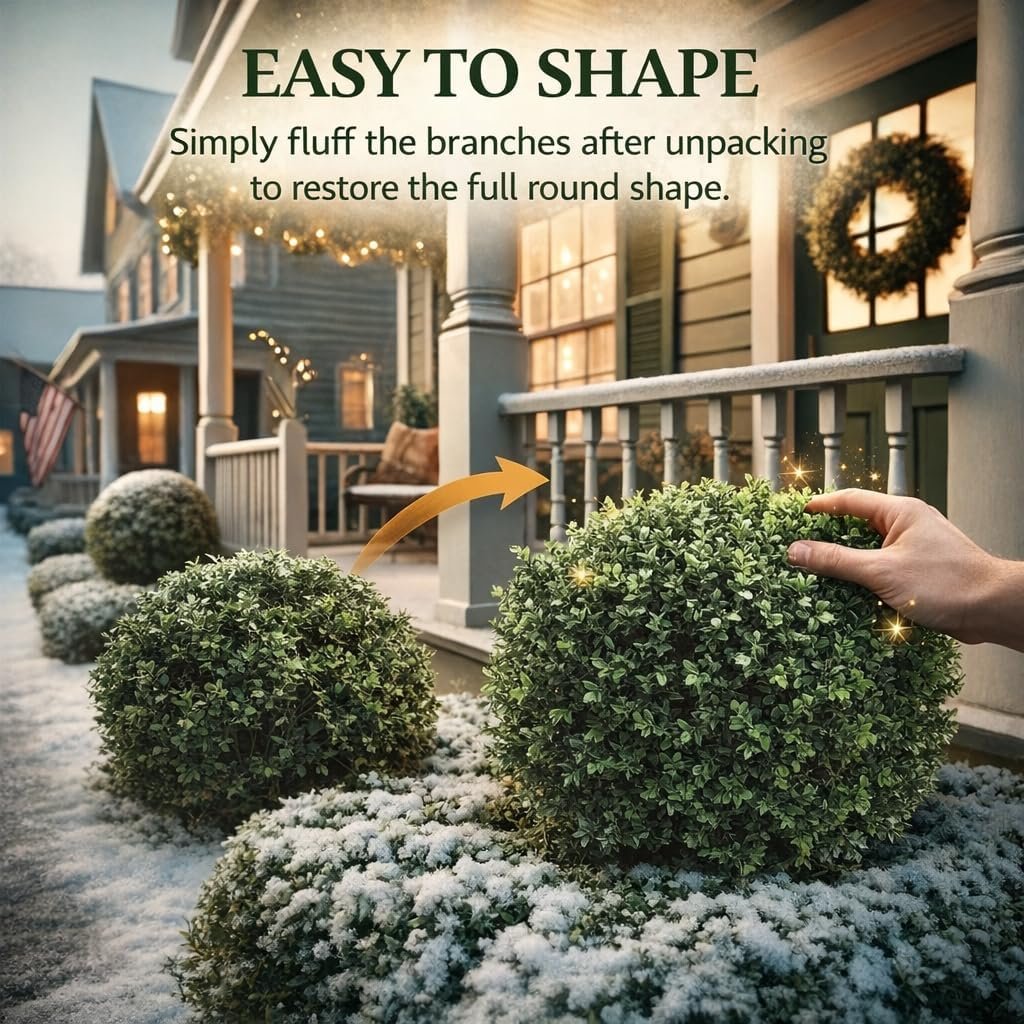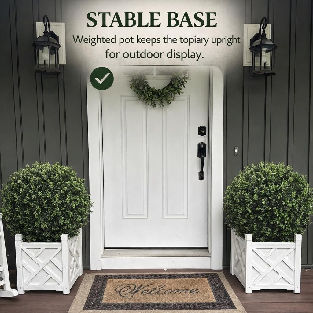 Built for Outdoor Durability – UV & Fade Resistant: Engineered with UV-stabilized, fade-resistant materials to withstand sun, heat, and cold while maintaining vibrant green color year-round. Reliable for exposed front porch, patio, or garden settings.