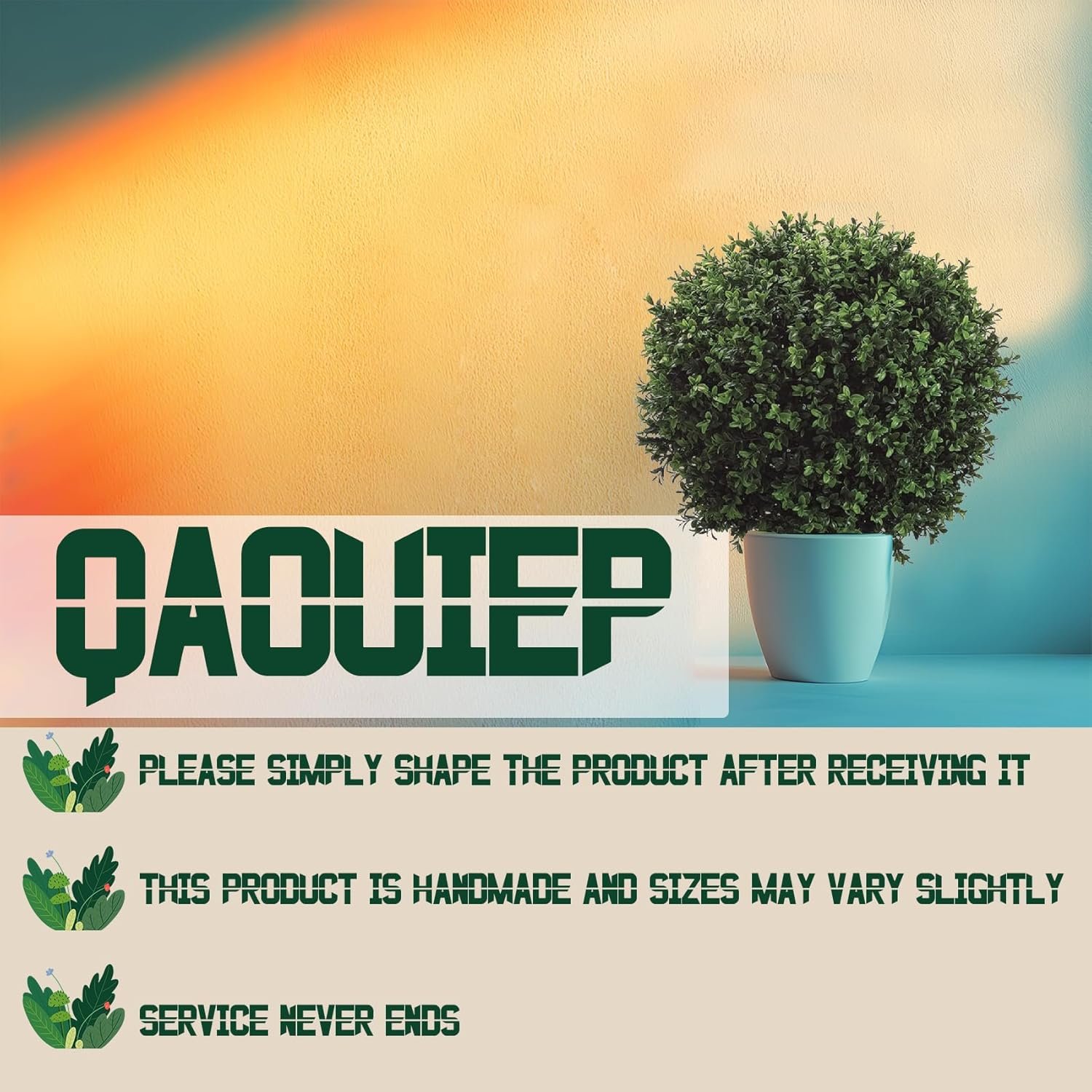 Ultra-Realistic Boxwood with Natural Wood Trunk: Features dense, layered foliage and a real wood trunk for a lifelike, high-end look. Handcrafted construction ensures leaves stay securely attached—minimal shedding during shipping or normal use, with no effect on overall appearance.