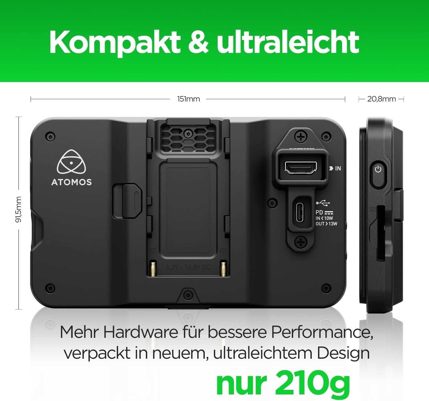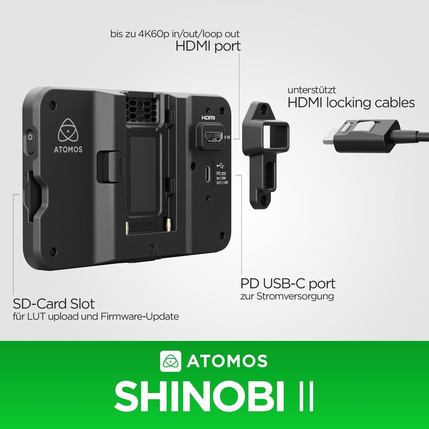 Atomos Shinobi II HDMI 4K Monitor with HDR Touchscreen, All Day Battery Life, and Lightweight Design (Black)