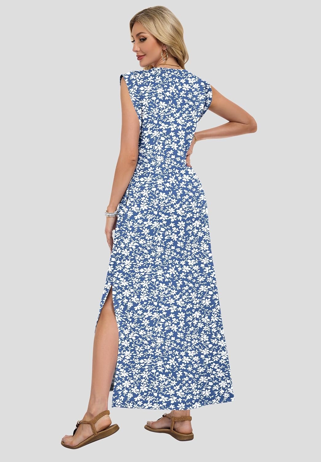 AUSELILY Women’s V Neck Maxi Dresses, Straight-Cut Wrinkle-Free, Summer Split Sleeveless Vacation Dress with Pockets 2026