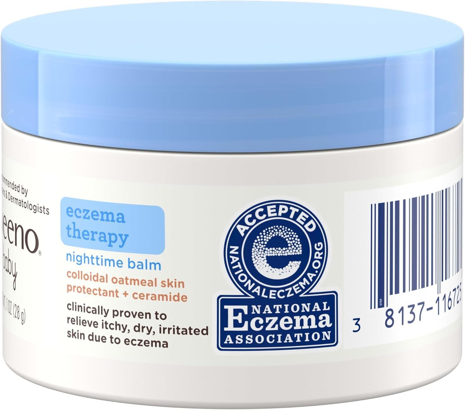 Aveeno Baby Eczema Therapy Nighttime Moisturizing Balm, Colloidal Oatmeal & Ceramide, Soothes & Relieves Dry, Itchy Skin from Eczema, Hypoallergenic, Fragrance-Free, Travel Size, 1 oz