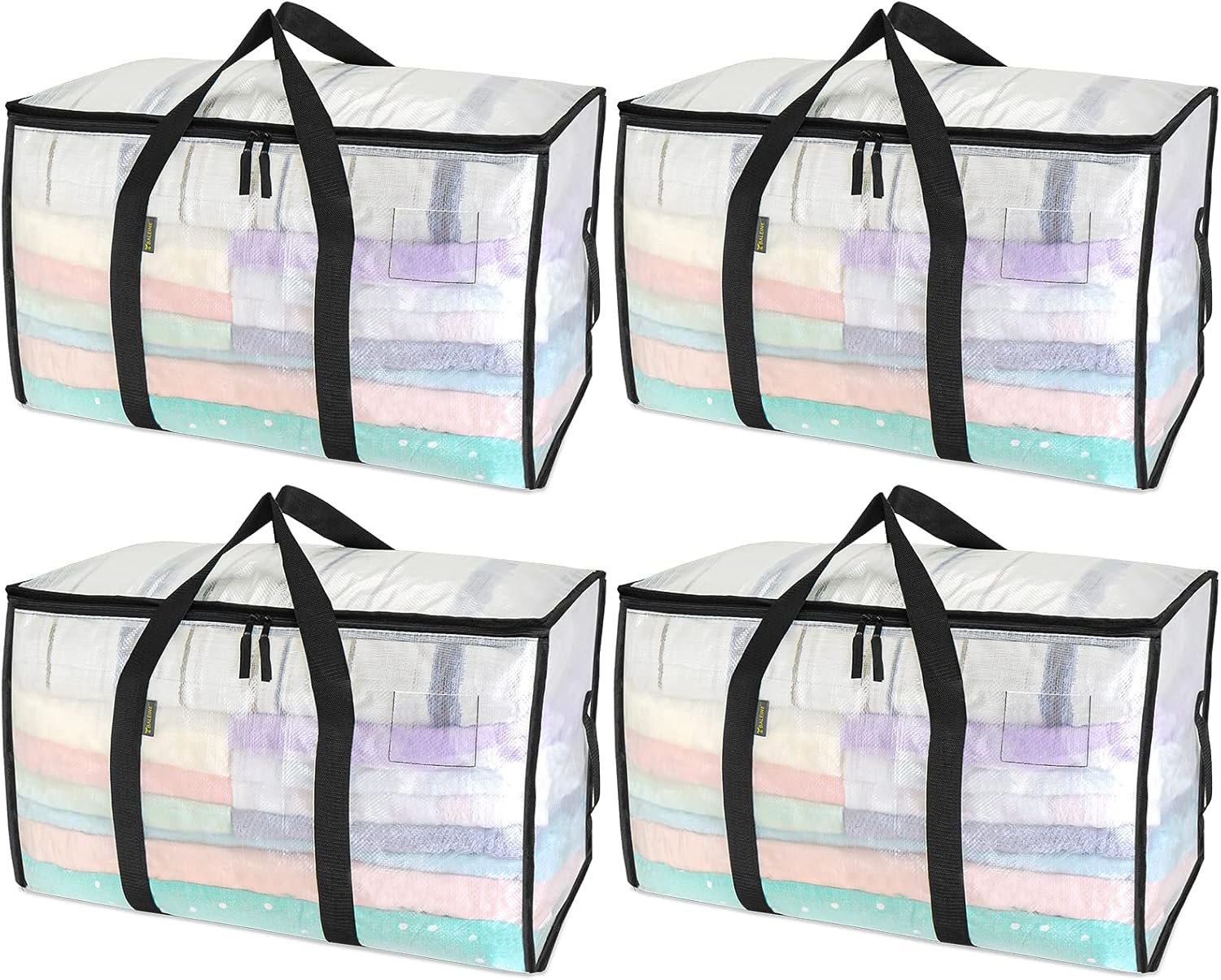 BALEINE 4-Pack Oversized Moving Bags with Reinforced Handles, Heavy-Duty Storage Tote for Clothes, Moving Supplies (Clear, 4-Pack)
