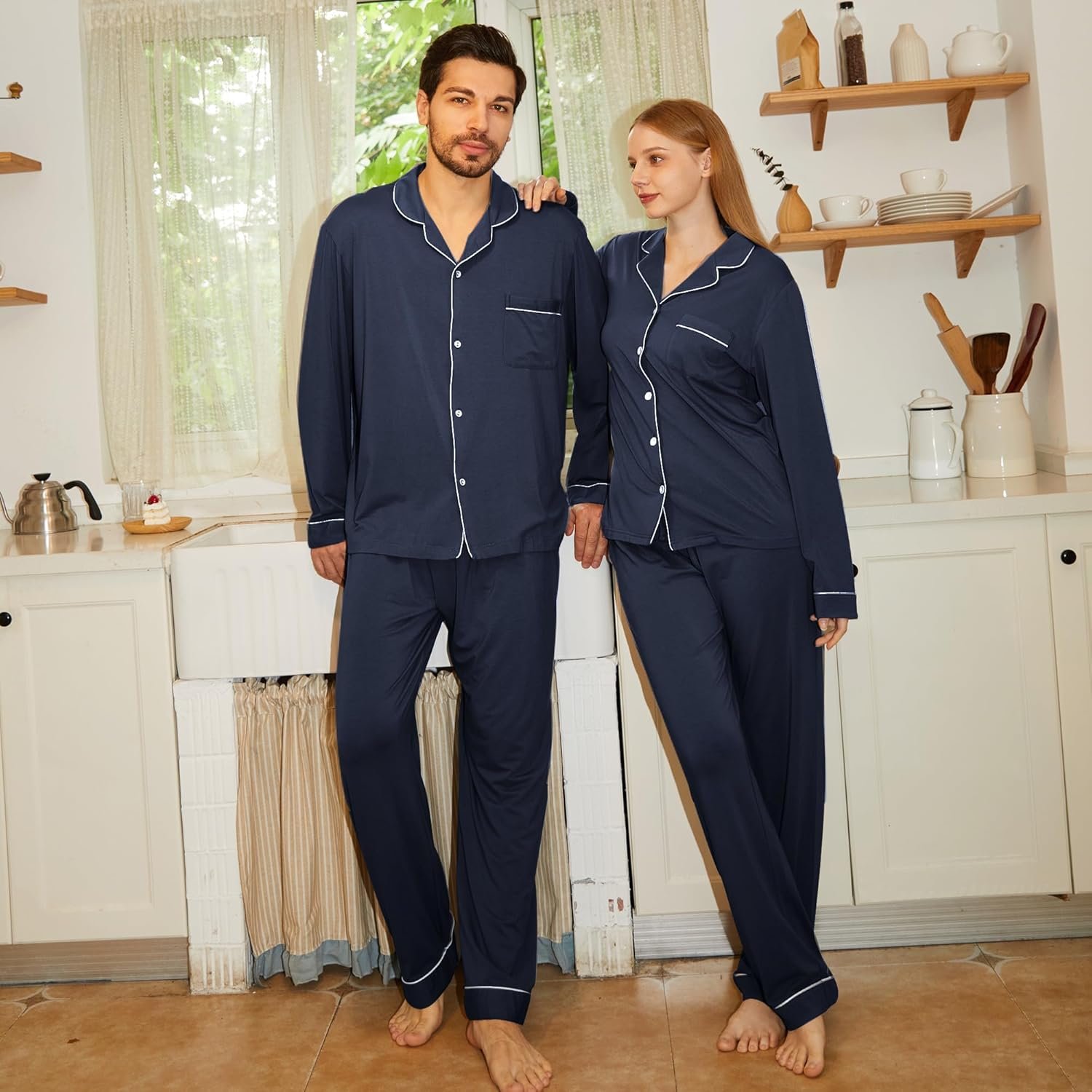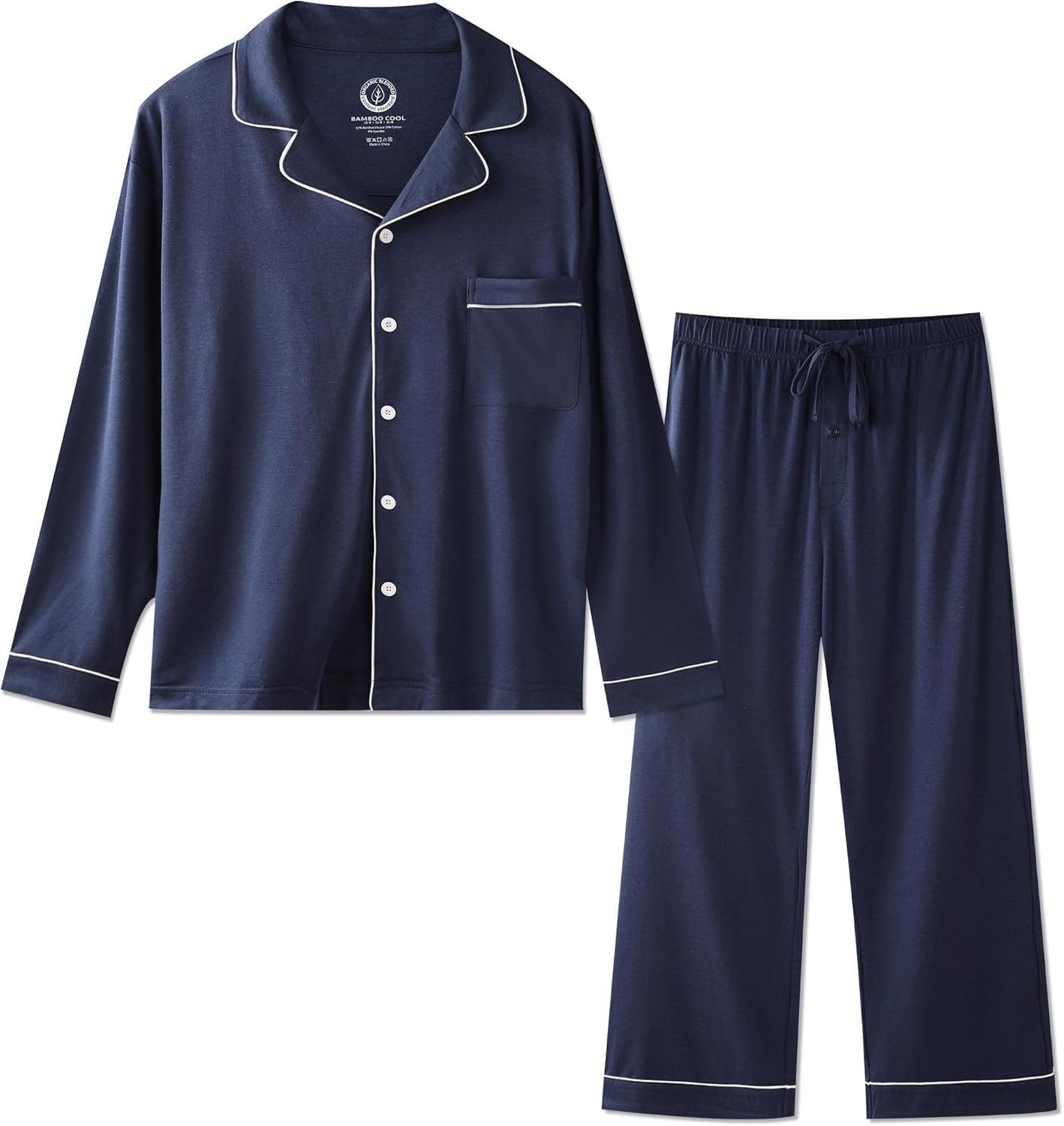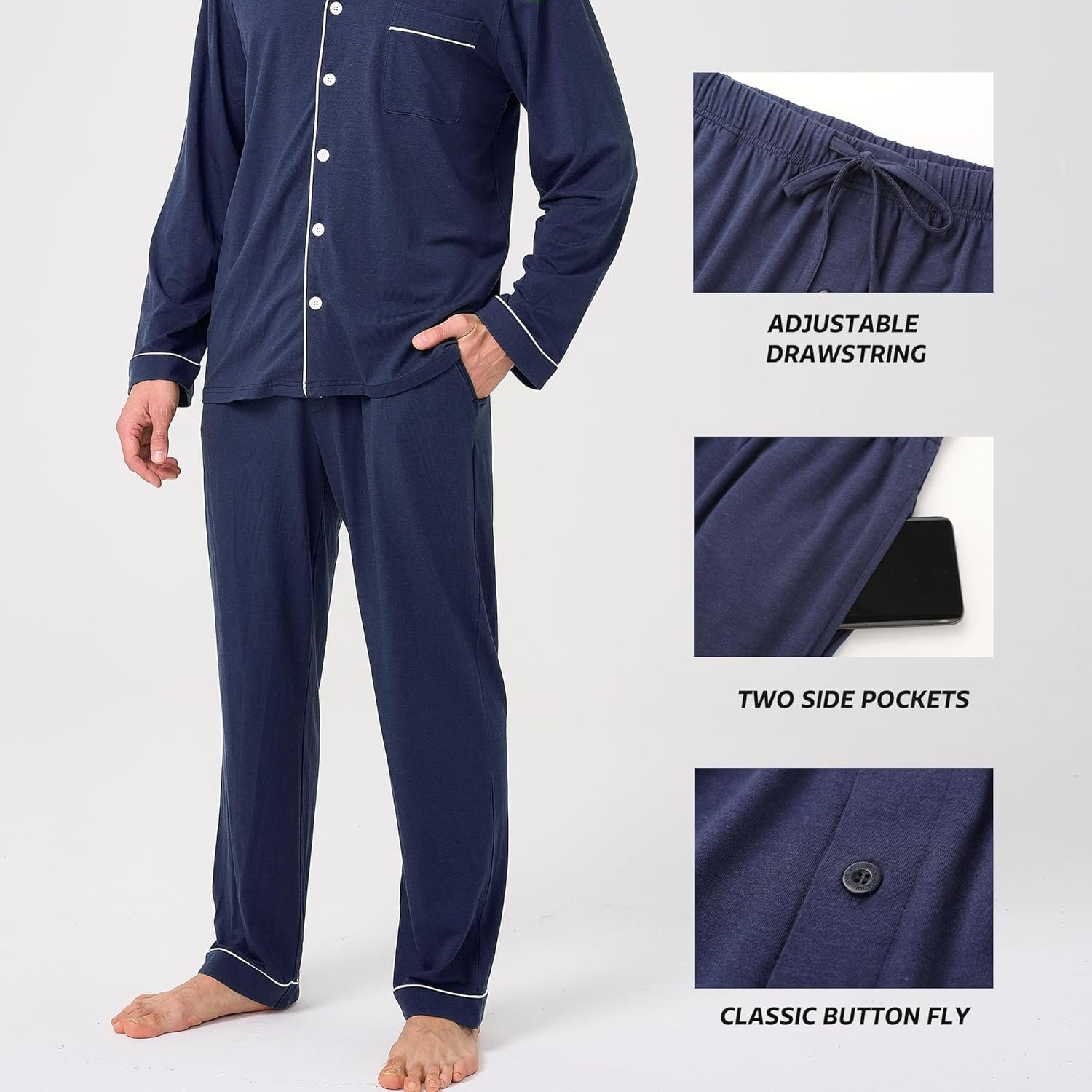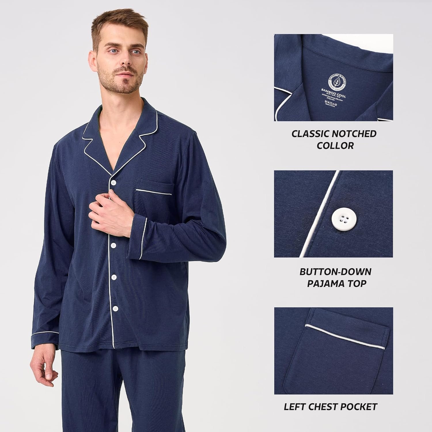 BAMBOO COOL Mens Pajama Set Bamboo Viscose Cotton Soft Lightweight Loungewear Sleepwear Long Sleeve and Pants with Pockets