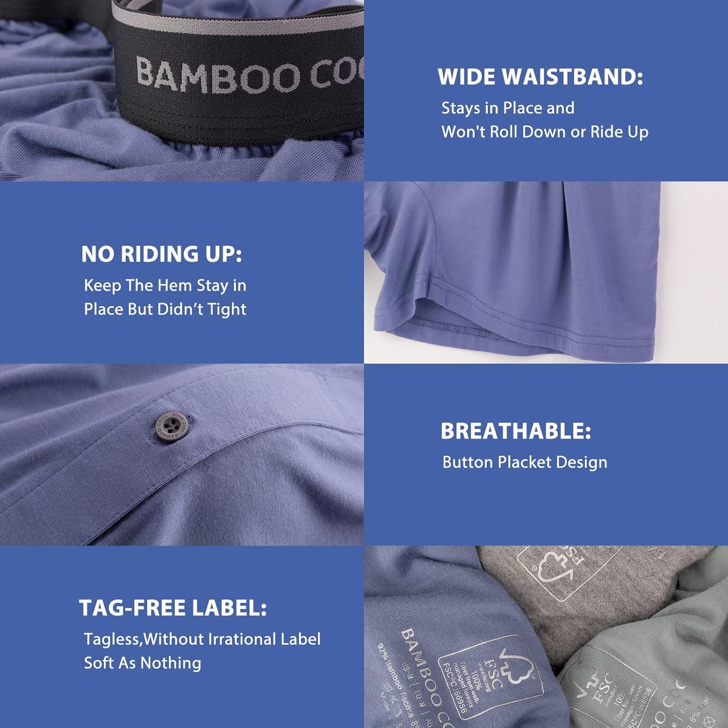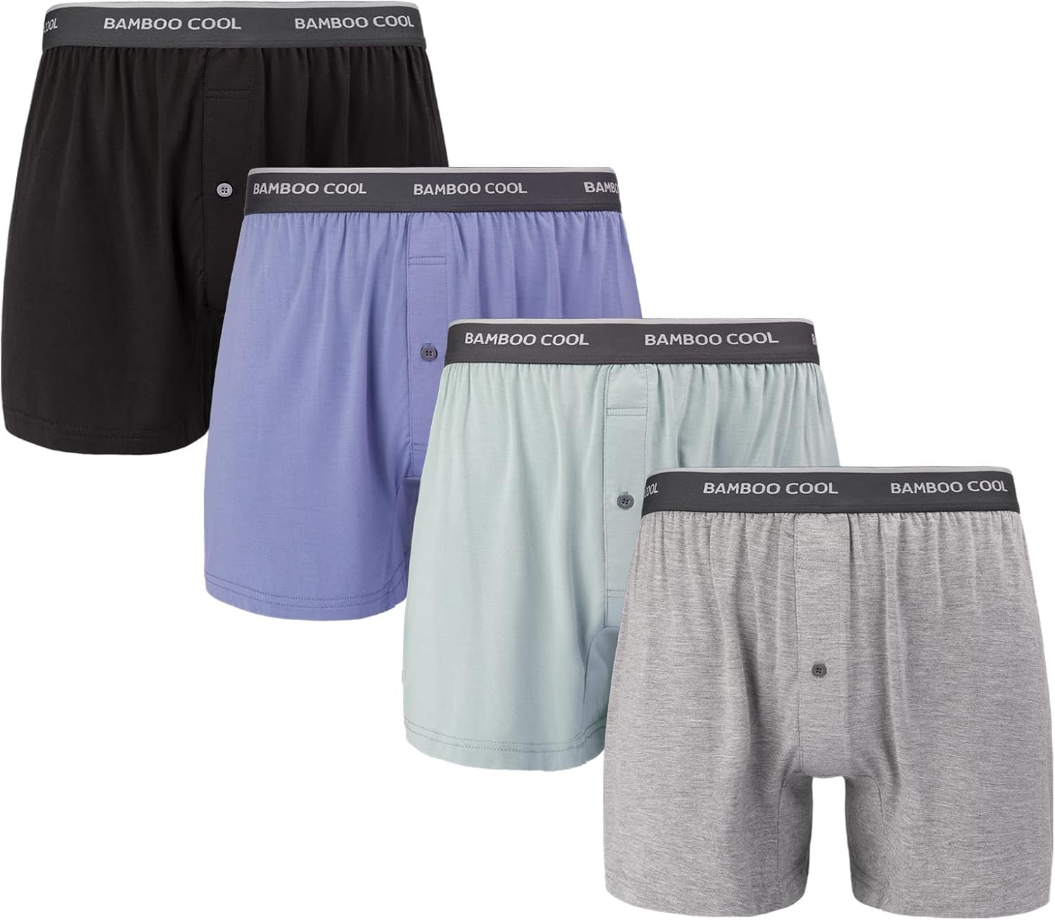 BAMBOO COOL Men’s Underwear Boxer Shorts,Breathable knit Boxers,Stretch and Relaxed Fit 4 Pack