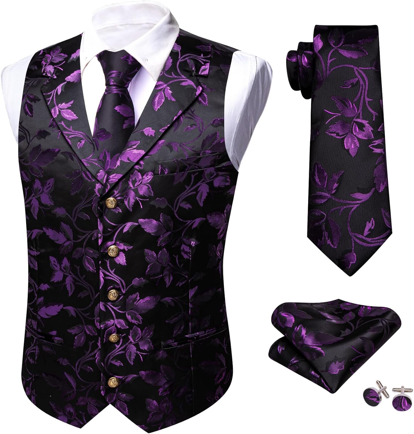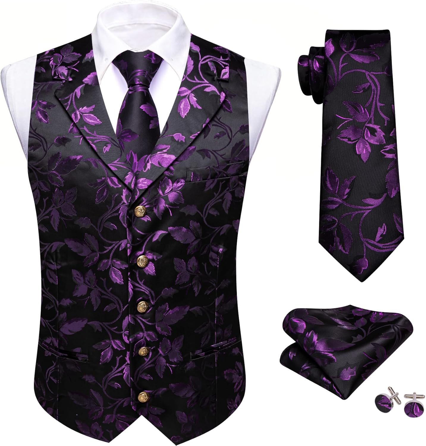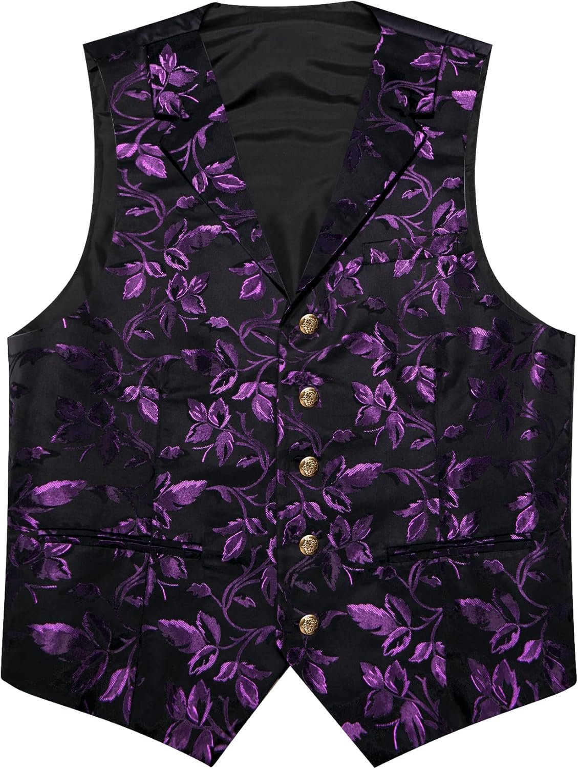 Barry.Wang Mens Silk Lapel/Shawl Collar Vest Tie Sleeve Holder Set Formal/Casual Paisley Vests Wedding Tuxedo Waistcoat