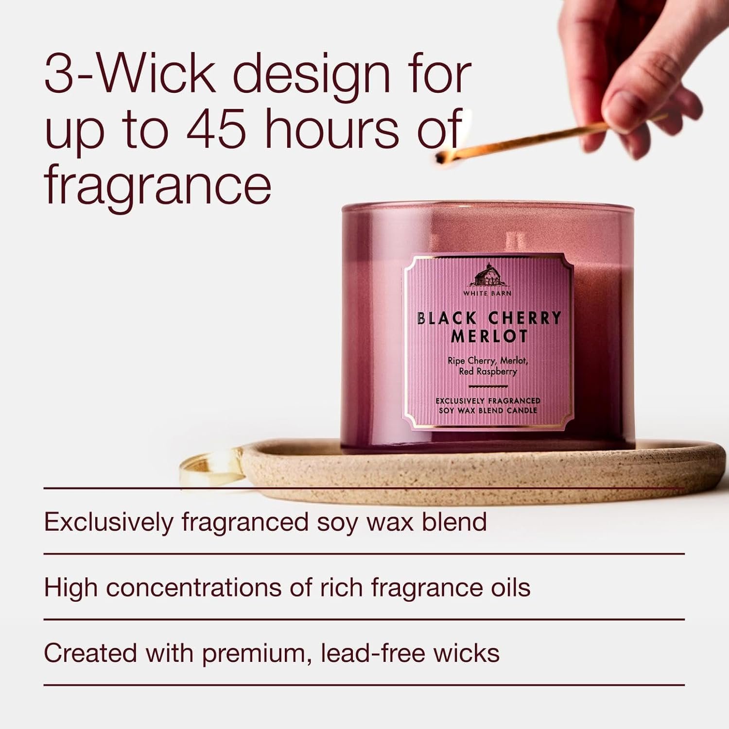 Bath & Body Works Black Cherry Merlot 3-Wick Candle – Scented Candle for At-Home Use – Long-Lasting, Room-Filling Fragrance – High Fragrance Oil Concentration – Soy Wax Blend – 2-Pack